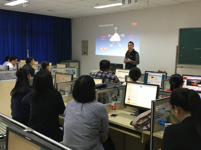 来自新道科技股份有限公司会计产品部的刘鹏经理、财会课程实践教学产品经理郑丹丹为与会人员做管理会计实践教学课程分享。刘鹏从行业、政策等方面变革分析新商业社会环境下对管理会计人才培养提出的新要求。他强调技术革新引发部分会计岗位由智能机器人替代,但情感类、创造类、管理类机器人仍无法替代。因此,新形势下管理会计人才理实一体化、综合素质培养迫在眉睫。郑丹丹给老师们分享了最新研发成果——管理会计课程平台,旨在为学校提供理实一体化教学课程。