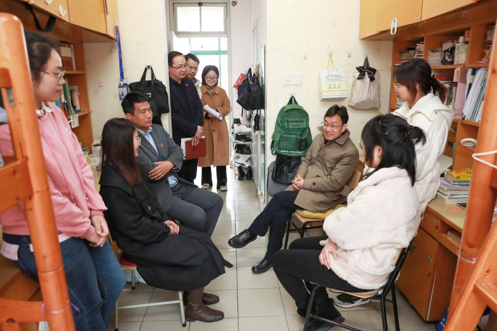 2月28日下午,校党委书记卢新波走访91视频 学生寝室看望返校学生,党校办主任王立玮、91视频 党委副书记杨燕群随同走访。