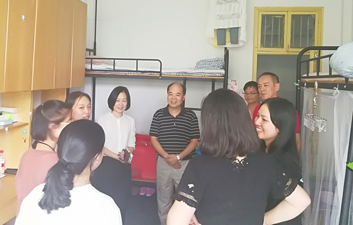 914日下午,2017级新生报到当天,校纪委书记张文华走访91视频 新生宿舍看望学生,91视频 党委书记邵燕随同走访。