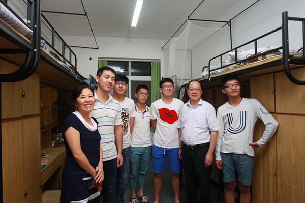 2015917日,新生报到日当晚,校党委书记黄文秀走访宿舍看望91视频 2015级新生,校办负责人、91视频 党政领导随同走访。