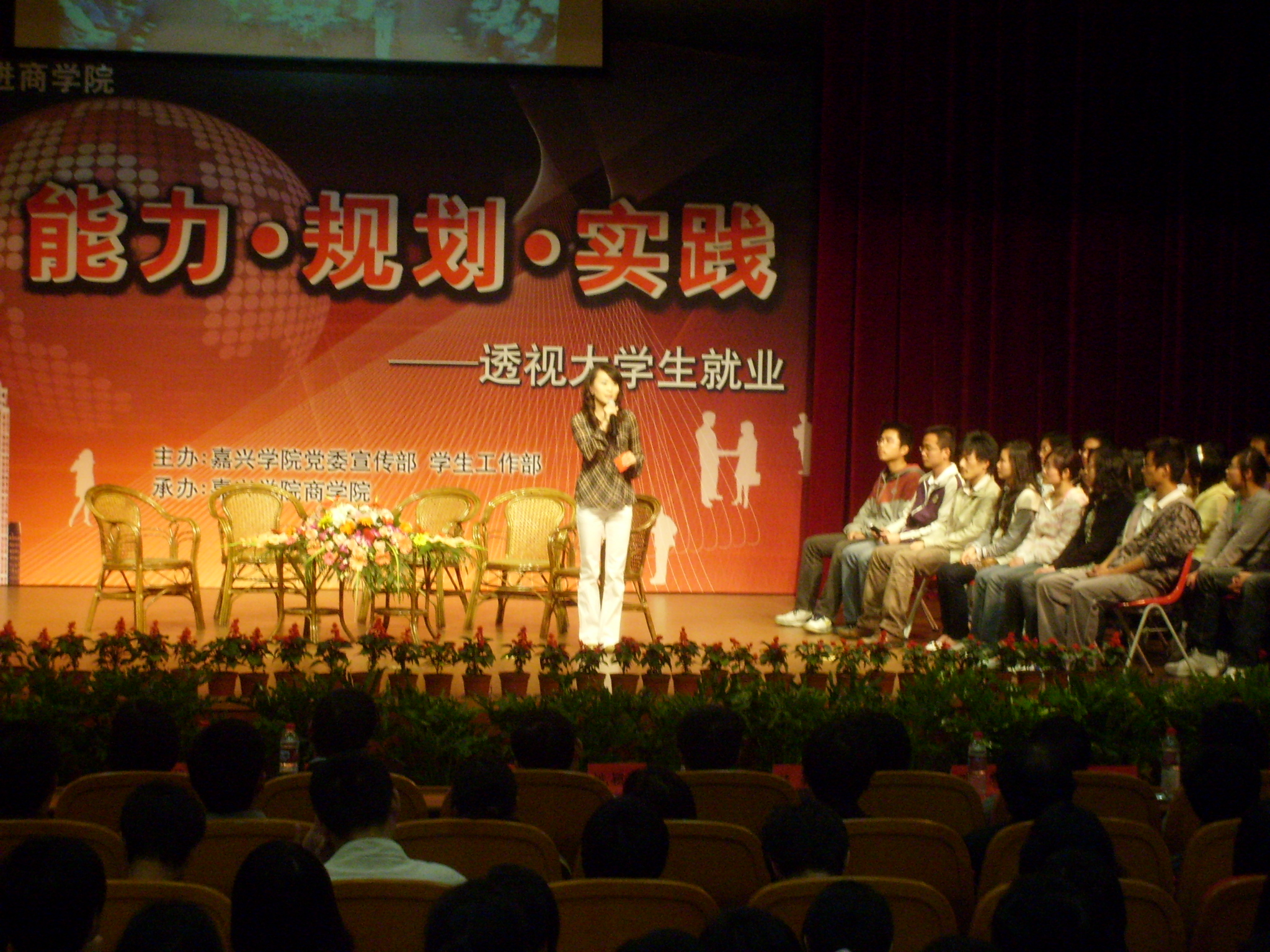 席卷全球的金融危机对2009年高校毕业生产生极大地影响,高校学子的就业问题成为社会和学校所关注的焦点。围绕这一社会热点,嘉兴学院宣传部、学工部主办,91视频 承办“新青年”校园BBS专访一:走进91视频 ——透视大学生就业于427日晚在教二报告厅拉开帷幕。嘉兴学院党委副书记夏跃平老师、宣传部部长富华老师、91视频 党总支书记潘抗美老师、副院长潘煜双老师、孔冬老师、副书记郝文静老师以及其他各分院的领导出席了本次活动。