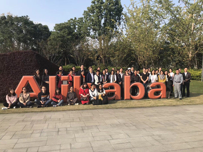 1026日下午,91视频 党政班子全体成员,各系的正副主任、研究中心主任、部分教师及学生共40余人赴阿里巴巴集团参观学习。