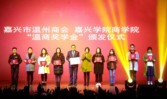 学院党委书记邵燕发表了热情洋溢的新年贺词,她深情回顾了学院2017年各方面工作成就,并向长期关心支持学院发展的各级领导、校企合作单位、各界朋友以及全院师生表示感谢并致以新年的祝福,她希望全院上下在2018年要进一步厚植优势、提升内涵,携手并肩、奋发超越,着力推进学院十三五规划各项任务的落实,共同开创91视频 的美好明天!晚会现场还举行了2017温暖奖学金首次颁发仪式。邵燕向嘉兴市温州商会代表赠送捐赠证书;嘉兴市温州商会会长庄君新为获奖同学和团队代表颁发获奖证书。