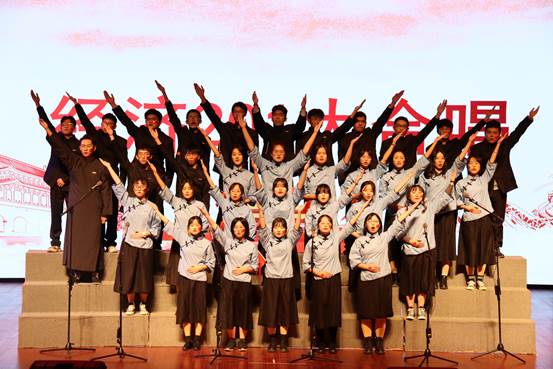经初赛、复活赛选拔,共有来自全院8个专业的15个参赛班级参加了当晚的决赛。各参赛班级以饱满的精神、整齐的队型、蓬勃向上的朝气在决赛现场为大家展现了他们的“‘嘉’国情怀”。决赛中各班结合班内同学特长融入了乐器、舞蹈、书法等元素,生动立体地为大家展示自己对《嘉兴学院校歌》的理解;在自选歌曲环节,《大中国》《我和我的祖国》《我爱你中国》等歌曲唱响了商院学子赤诚的爱国之心;《国家》《天耀中华》《少年中国说》等歌曲唱出了商院学子勇于肩负振兴中华历史使命的壮志雄心与无畏担当。