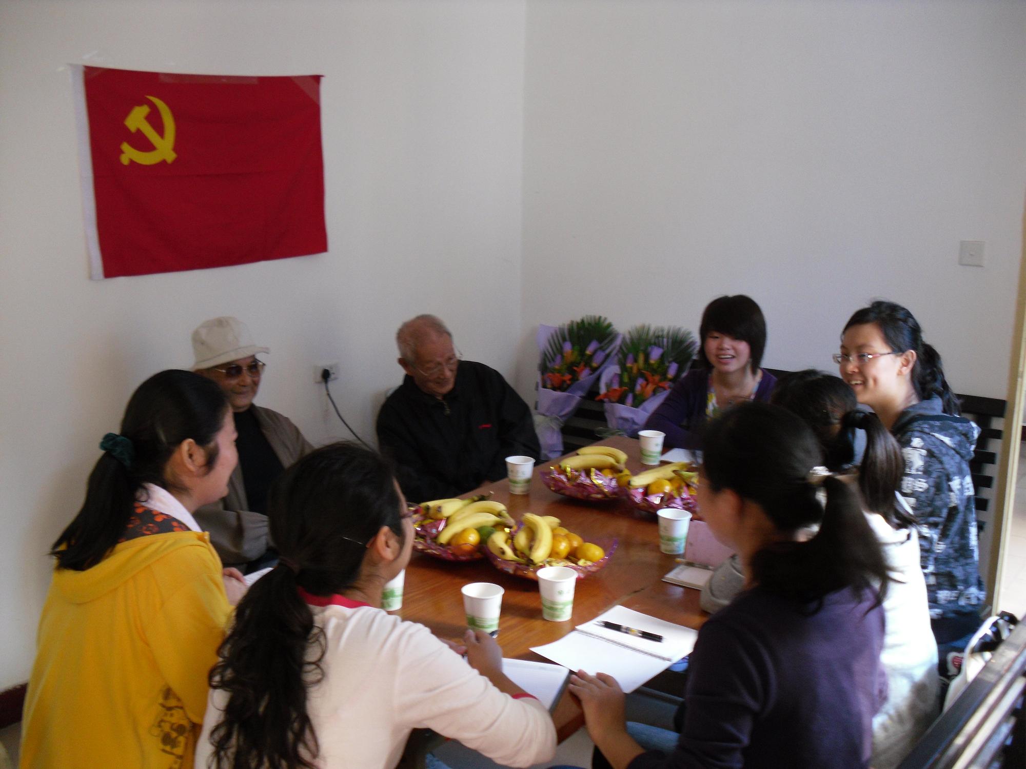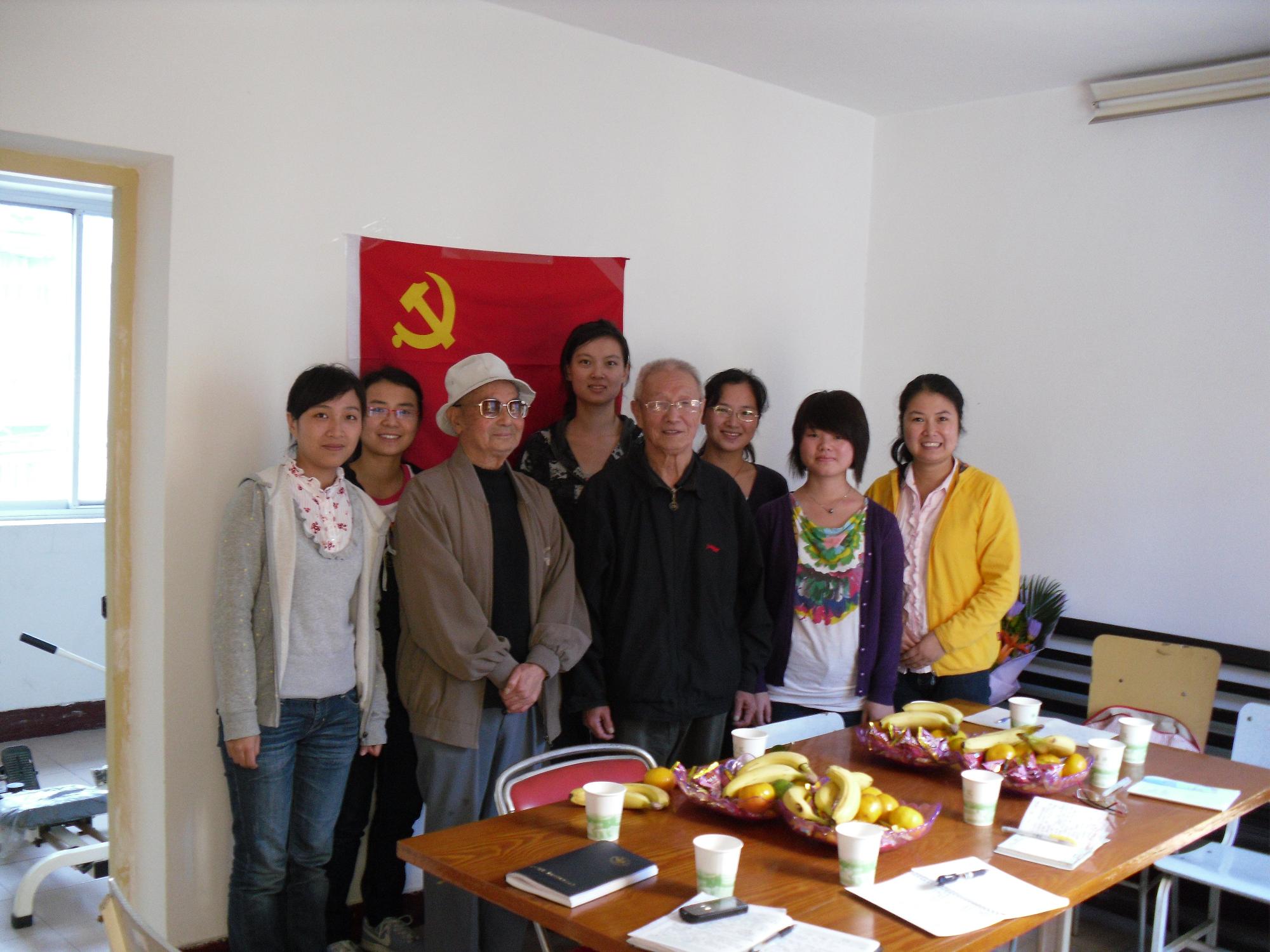 之后,党员们还向两位离休老干部学习方正为人、勤慎治学的校训精神,学习做人做事的道理。在座谈中, 老师还嘱咐我们,青年人一要树立崇高的理想,坚定的信念,思想上与党中央保持一致,与时俱进,为人类壮丽事业而奋斗;二要善于学习,养成读书的好习惯;三是要待人以诚,做道德高尚的人。