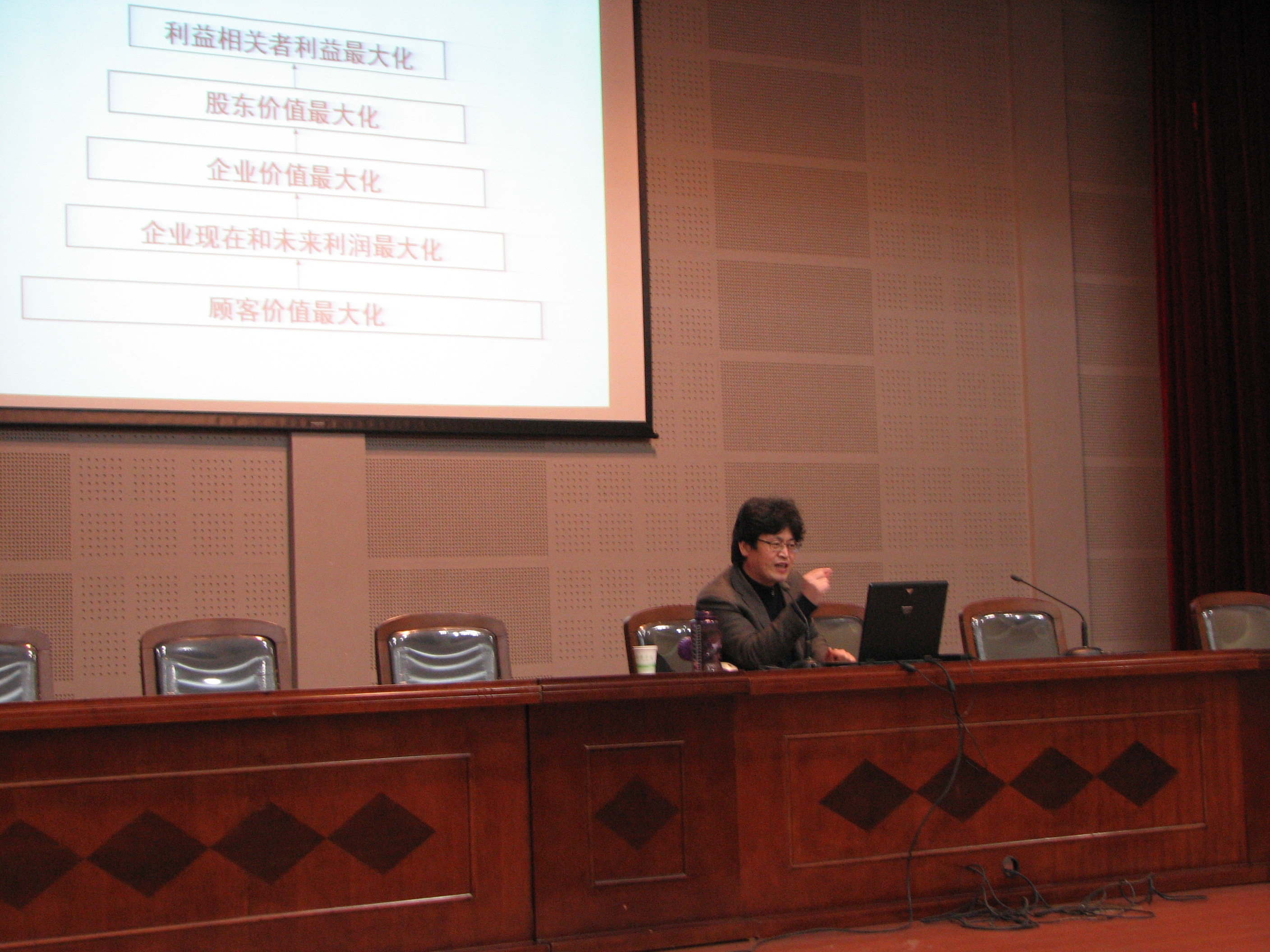 1127日下午,浙江工商大学财会学院副院长、复旦大学经济学博士、厦门大学博士后刘海生教授在二教报告厅举行《战略成本管理——基于价值创造的视角》的会计学术报告会。刘教授从战略成本管理产生的背景、战略成本管理与传统成本管理区别、现代成本管理概念创新、战略成本管理基本框架 、战略成本定位分析、成本动因分析等几个方面分别进行了论述,刘教授的报告深入浅出,风趣幽默,不时引来学生的阵阵掌声。