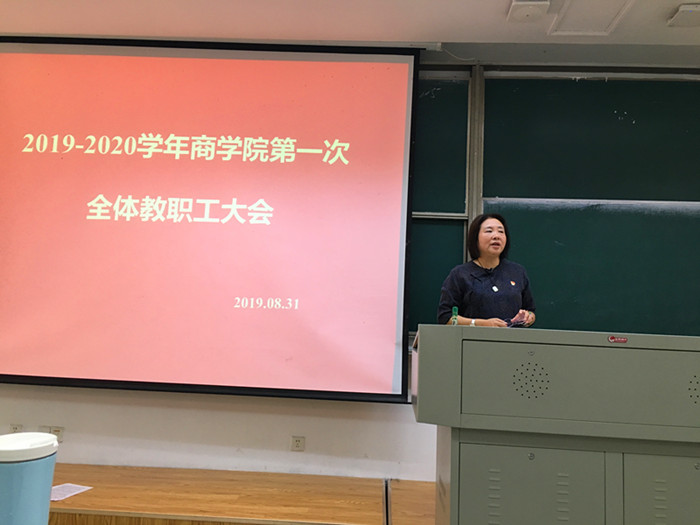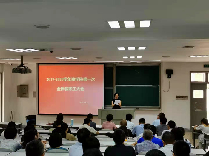 院长潘煜双传达了校党委书记黄文秀、校长盛颂恩在学校中层干部暑期读书会上的讲话精神,并在总结学院上学期工作的基础上就学院新学期重点工作作部署。她指出,现在是学校申硕创大的冲刺期,具有百年办学历史的91视频 要勇担重任,除了认真完成常规工作之外,更要聚焦中心工作求突破。91视频 新学期的中心工作就是申硕创大补短板,高标准要求各项指标的完成。围绕这一中心任务,要继续推进课堂改革与特色班建设,抓好新生入学的始业教育,推进一流专业建设工作,举全院之力完成BGA国际化专业的认证工作;做好会计学、应用经济学、工商管理学三个硕士点的申报准备、国家两科基金的申报以及省级智库平台的建设工作;继续加大高层次人才引进,加强学科团队建设,营造良好的学术氛围。她强调,学校发展进入非常时期,全体教职员工必须坚守岗位,认真做好各项工作,圆满完成硕士点的申报工作。