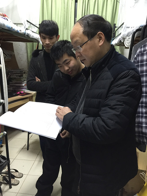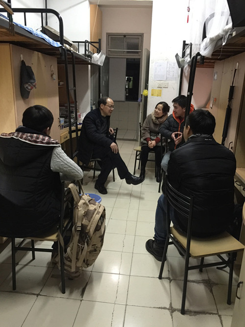 20151223日晚,校党委书记黄文秀走访寝室专程看望了91视频 经济学专业在第三届“中金所杯”高校大学生金融及衍生品知识竞赛(面向中国大陆及港澳台、北美、欧洲地区)中取得第一名好成绩的夏佳栋同学。院党委书记左军随同走访。