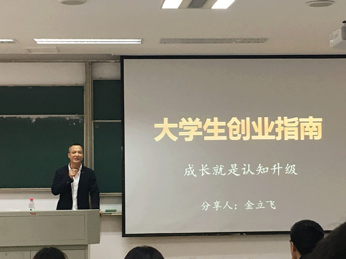 围绕“大学生创业指南——成长就是认知升级”这一主题,金立飞与同学们分享了自己对创业的认识、创业过程中对自我的认知升级和对创业的思考。他用自己独特的见解告诉同学们, “有时候不做什么比做什么更重要”、“回归事物本源去思考基础性的问题”这样富含哲理的创业与人生道理。金立飞还讲述了“定位、91视频、商业模式”等营销方面的知识,其理解深刻而又不失专业的讲解引发了同学们深思。