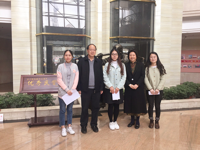 黄文秀书记一行先后走访了浙江雅莹集团有限公司、浙江五芳斋实业股份有限公司、利安达会计事务所等多家企业,和实习的同学们进行了亲切地座谈。黄书记详细了解同学们的实习岗位、实习内容、实习效果等情况,详细询问了同学们从学校到职场过程中遇到的问题,并且认真聆听了同学们对实习工作的意见和建议。黄书记还表扬了同学们在实习岗位上的积极表现,鼓励同学们多从实践中学习,学有所用。