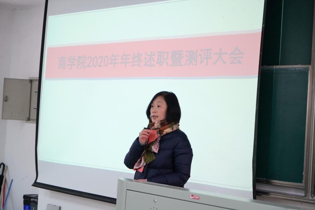 院长、院党委副书记潘煜双代表学院班子从党建与思想政治工作、专业建设与教学改革、科研活动与学科建设、学生管理与学生发展及存在的问题等五个方面对2020年的工作进行了全面总结。随后,她又代表班子向全院教职工汇报了十三五期间(任期内)91视频 取得的突破性成绩。她指出,大91视频 十年来每一次成绩、每一项取得的突破、每一次发展,都是学院上下勠力同心、全体师生倾情付出、矢志奋斗的结果。现在学校正处在新的发展节点上,机构改革后也必将会带来新的挑战和机遇,未来只有迎难而上才能取得更好的发展,才能实实在在的成绩为百年商科这块牌子增光添色。