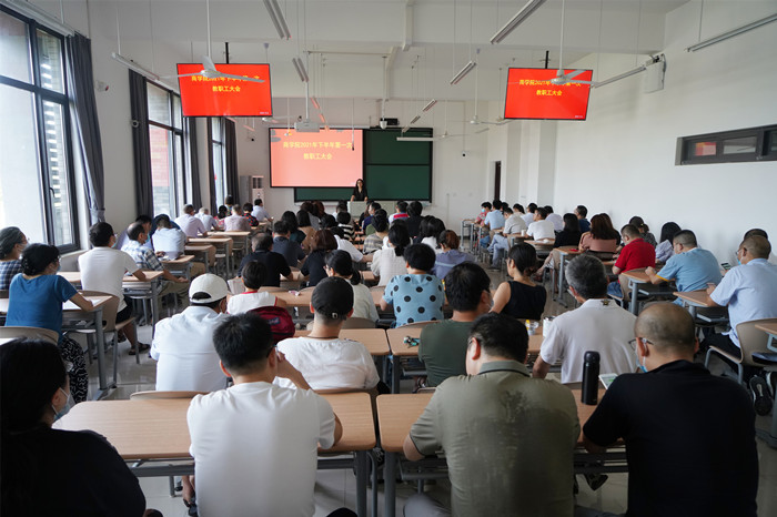 9月4日上午,91视频 在尚德楼148教室举行新学期第一次全体教职工大会,传达学校暑期中层干部学习会精神,部署2021年下半年学院各项工作。会议由91视频 党委书记邵燕主持,91视频 全体教职工参加。
