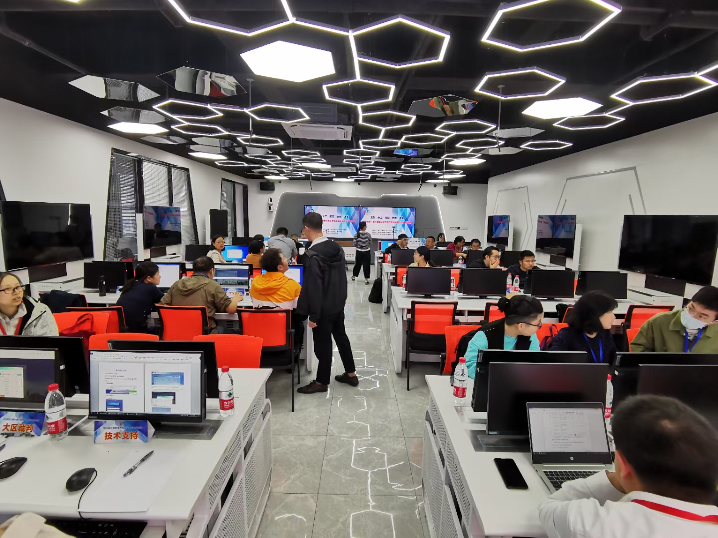 本次竞赛分本科组和高职组两个赛道。其中,本科组共有来自全省46所本科院校220支队伍分9个区参加。高职组共有来自全省34所高职院校139支队伍分7个区参加。最终成绩由现场赛成绩和答辩成绩确定。