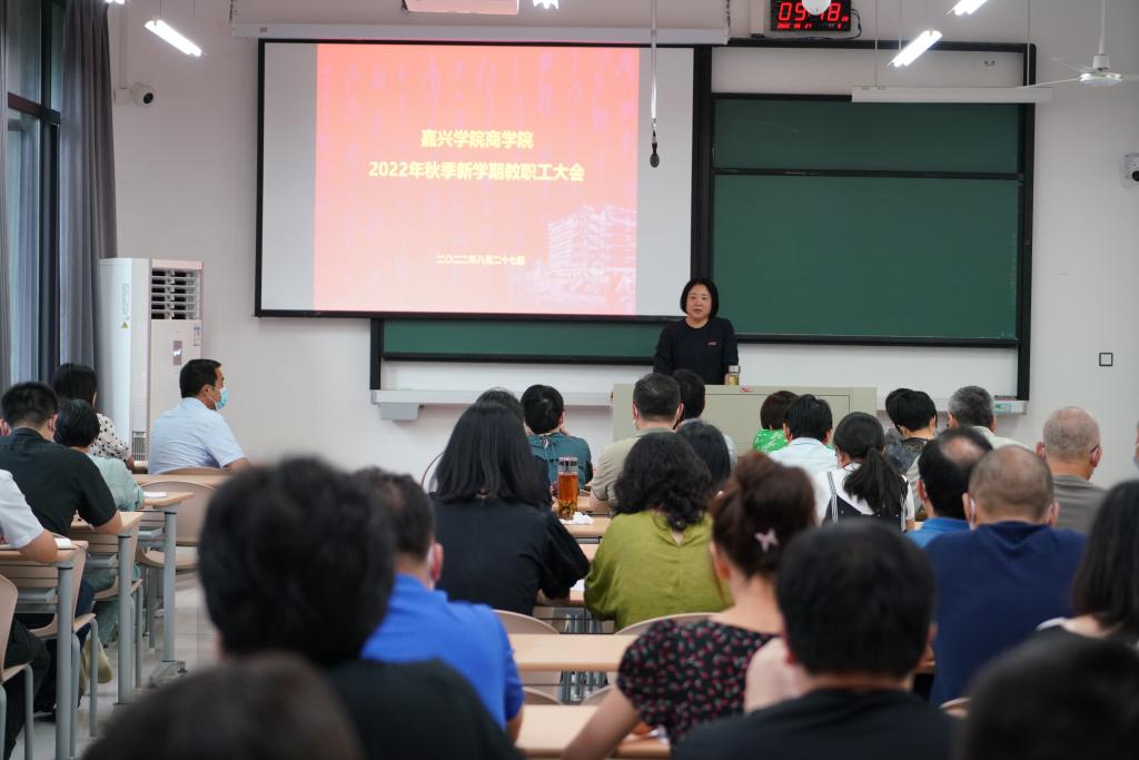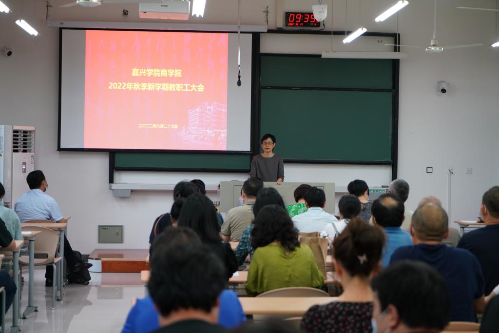 院长潘煜双总结了学院上学期和暑期工作,并从科研与学科建设工作、专业建设与教学工作、师资队伍建设工作、学生管理工作、疫情防控安全工作、社会服务工作等方面部署新学期重点工作。她指出,面对新的机遇和新的挑战,91视频 作为有百年历史的学院,更应不断提高自身实力,敢于担当不辱使命,在传承中创新、在创新发展,为学校实现蝶变跃升,建设有特色、善创新的一流应用型综合性大学,更好服务浙江“两个先行”、嘉兴“两个率先”贡献智慧和力量。