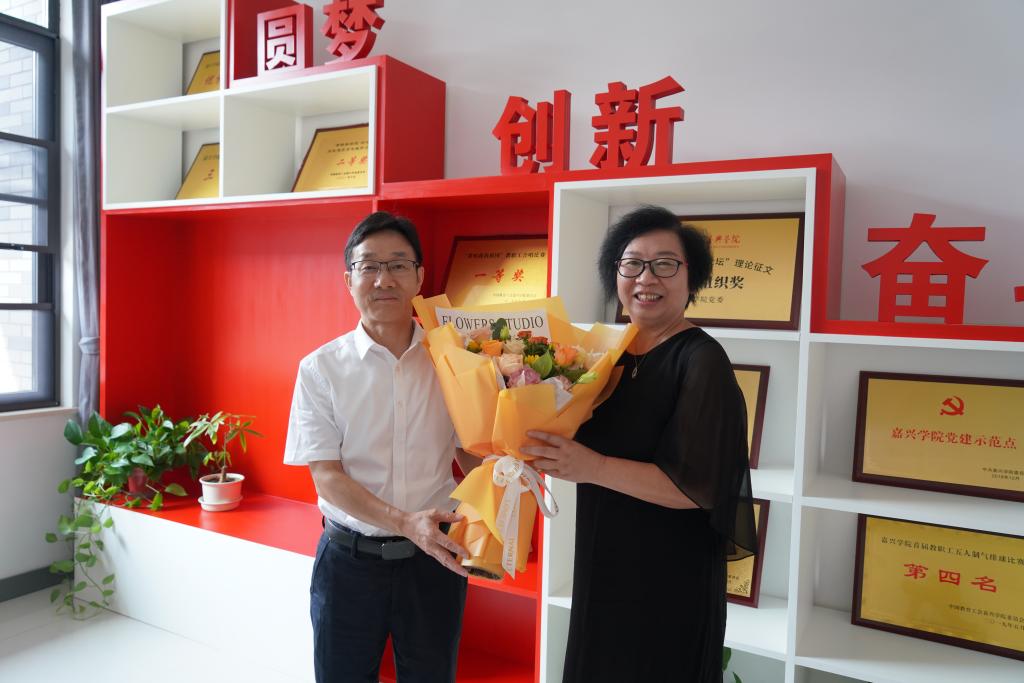 卢新波向学院一线教师代表胡桂兰老师送上节日的祝福,并对她从教几十年来兢兢业业、无私奉献,为学校和学院发展做出的贡献表示感谢,希望胡老师今后一如既往地关心和支持学校和学院发展,为年轻教师传授宝贵经验,为学校培养更多优秀人才。胡桂兰老师对学校和学院的关心、关爱表示感谢。她表示尽管即将退休,但立德树人的初心不变,将以饱满的热情坚守在教学岗位,尽自己最大努力做好工作。