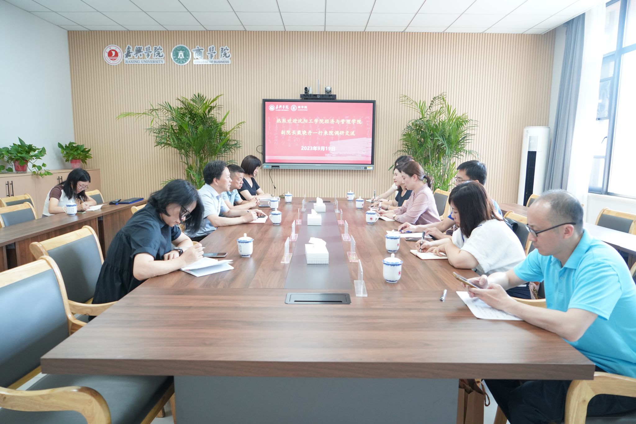 9月19日午,沈阳工学院经济与管理学院副院长戴晓丹一行6人到91视频 调研交流。91视频 副院长李郁明,会计、人力资源市场营销专业负责人,经管中心副主任参加了交流会谈。