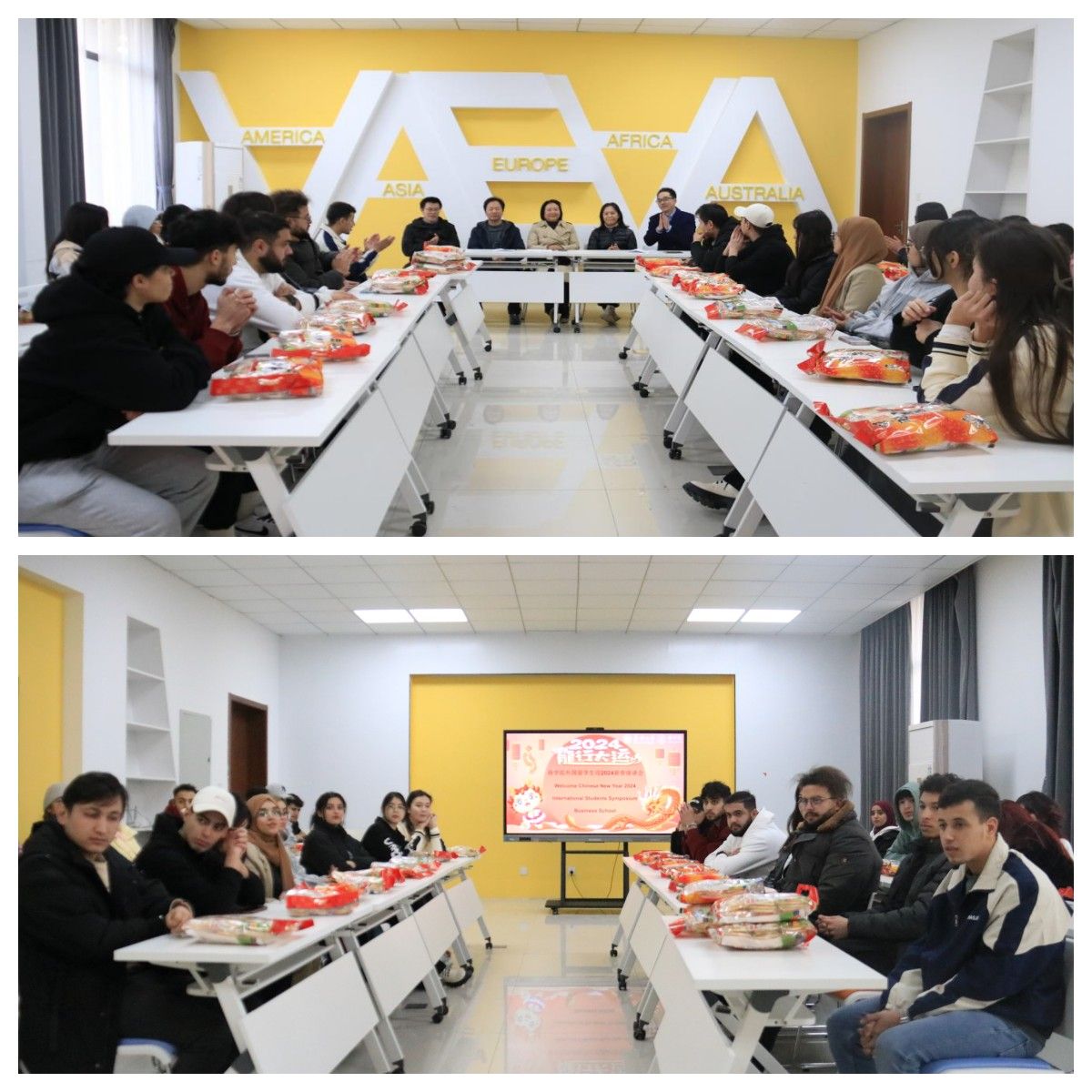 潘煜双教授代表学院诚挚欢迎来自摩洛哥、俄罗斯、哈萨克斯坦、乌兹别克斯坦、泰国、孟加拉国等全球各国学历留学生就读91视频 。她详细询问和了解了留学生们在校的学习生活情况,祝愿留学生们2024新年快乐!她勉励留学生们在中国龙年新年里努力学好专业知识,增进对中国和中华文化的了解,并表示学院和专业也会进一步为留学生们提供必要的学业指导和帮助。同时希望留学生们把来自中国的龙年新春祝福带给各自国家的亲人和朋友们。