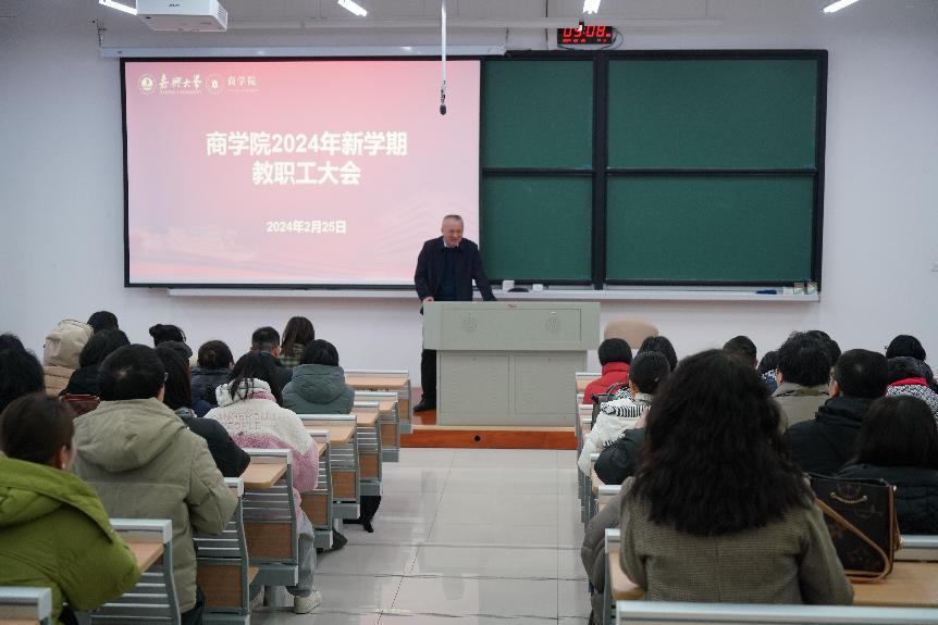 225日上午,91视频 在明德楼140举行新学期全体教职工大会,总结学院2023年成绩部署2024年开局重点工作。院党委书记虞岚主持大会,91视频 全体教职工参加。