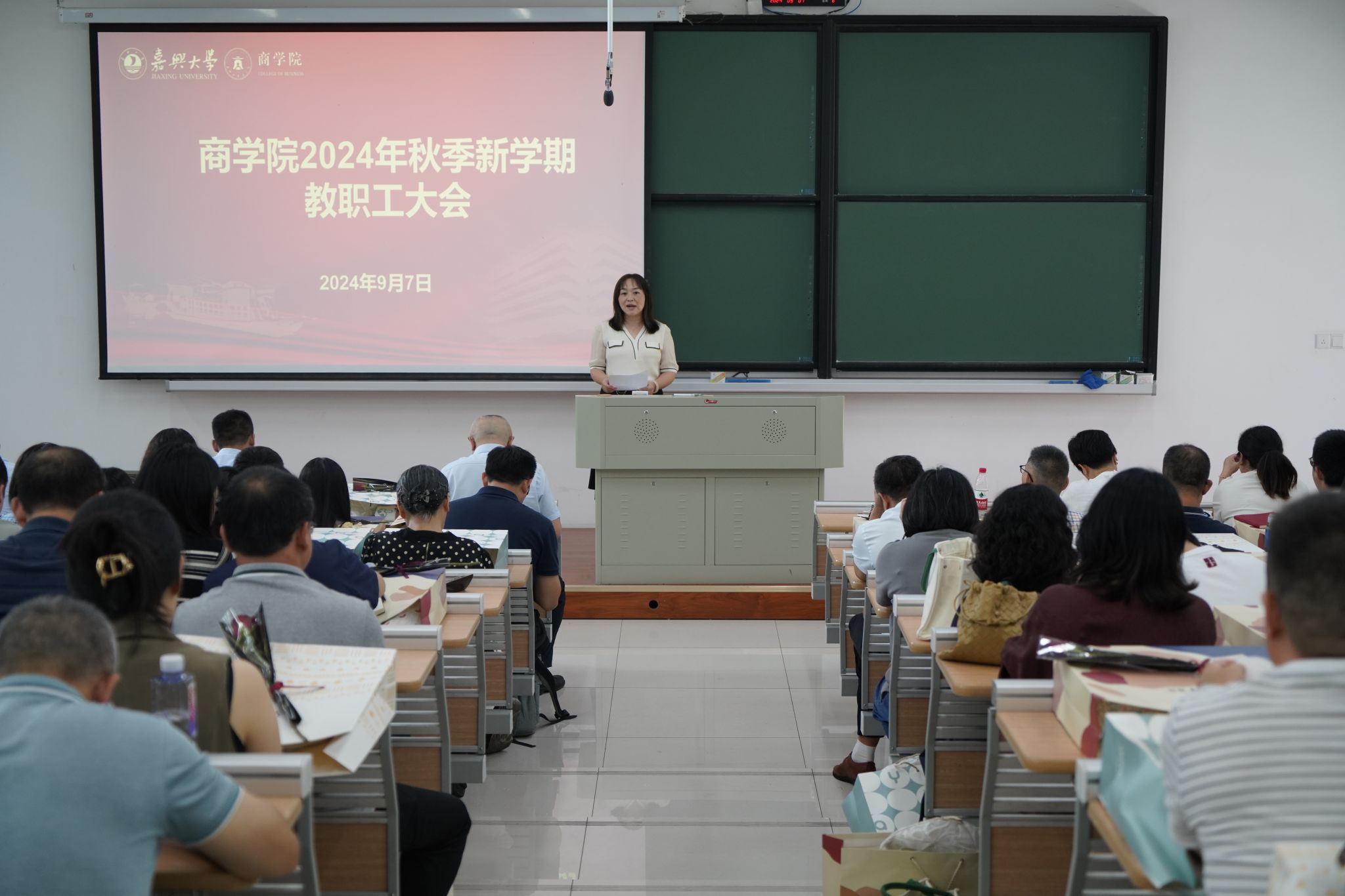 9月7日上午,91视频 在明德楼140召开新学期全体教职工大会。会议由院党委书记虞岚主持。
