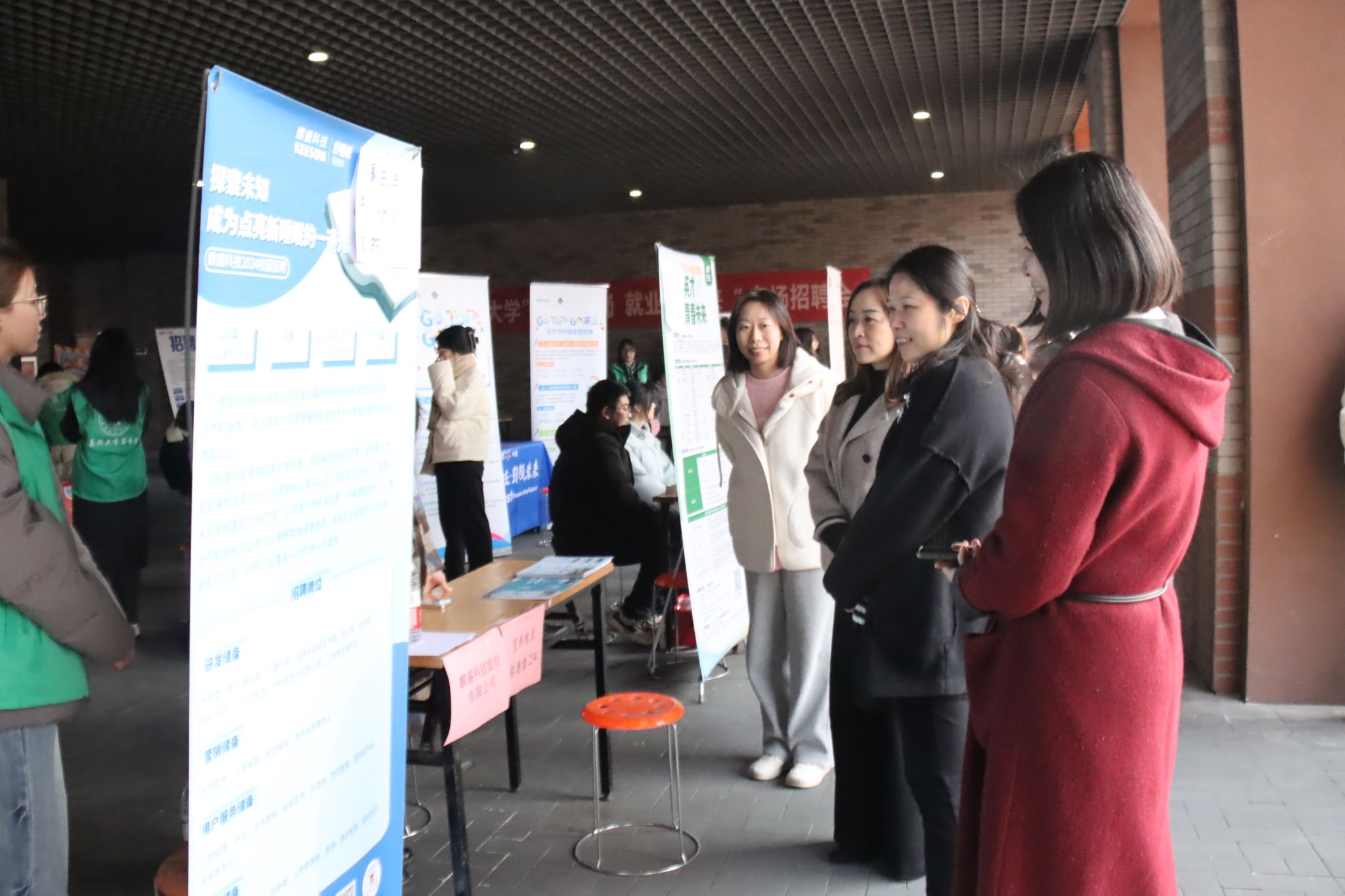 12月26日下午,91视频 于铭德楼一楼成功举办“成就梦想,‘职’通未来”2025届毕业生专场招聘会。招聘会吸引了麒盛科技股份有限公司、浙江青莲食品股份有限公司、嘉兴蔚来汽车销售服务有限公司等23家优质企业参与,涵盖多个领域,共计提供管培生、招聘专员、财会专员等多样化就业岗位210余个200余名毕业生积极前往投递简历。