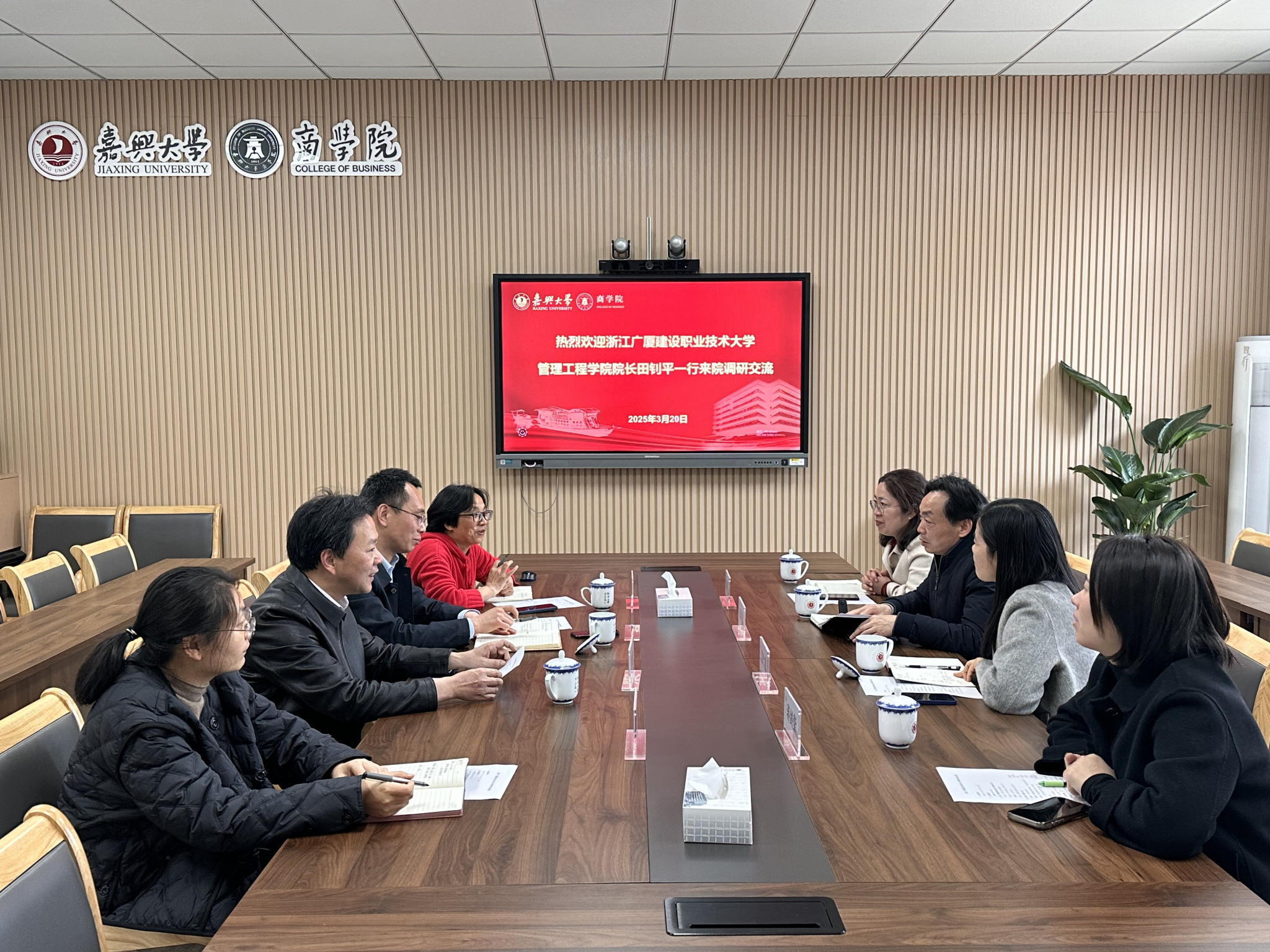 浙江广厦建设职业技术大学管理工程学院院长田钊平一行来91视频 调研交流