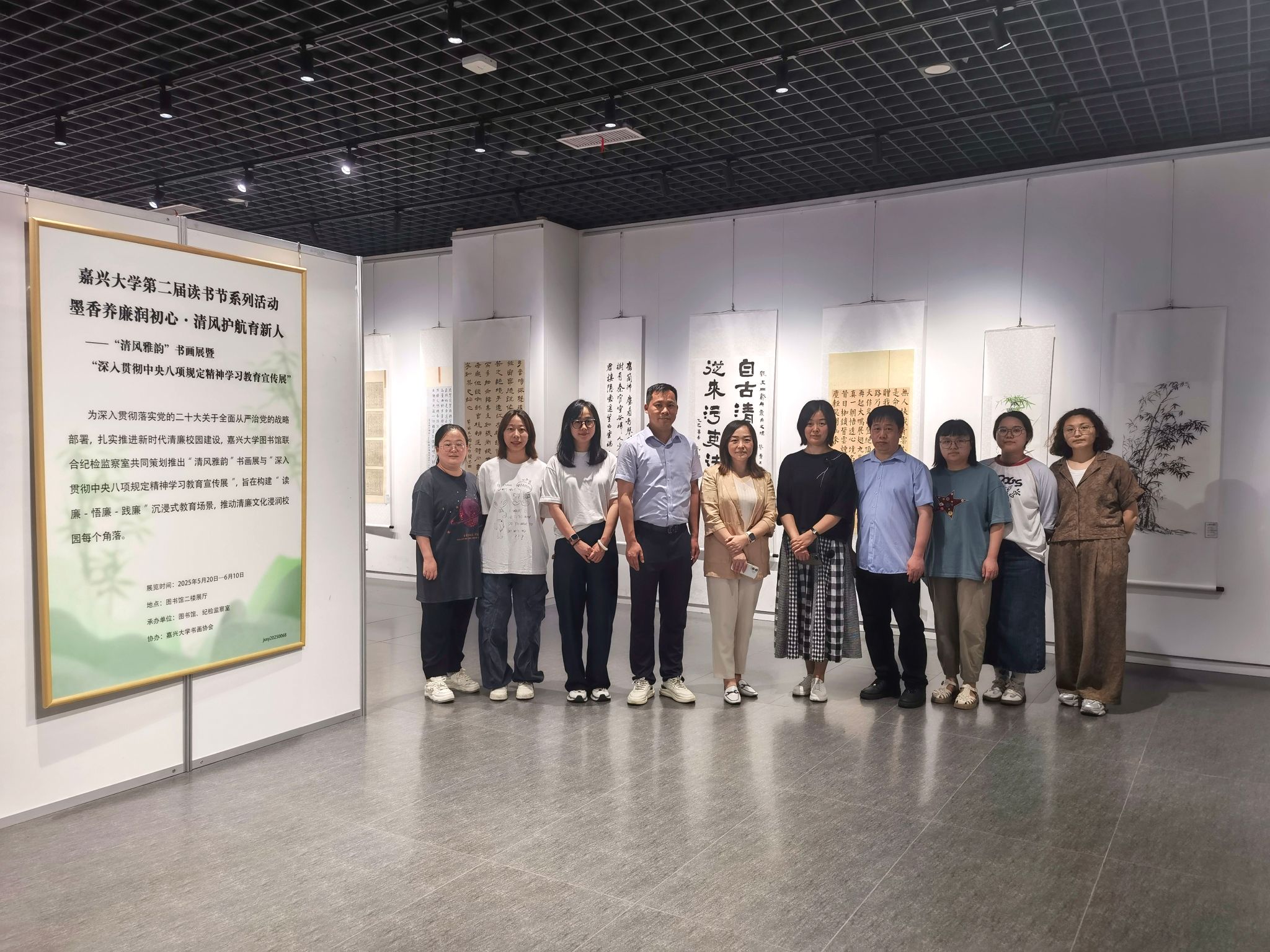 为了扎实推进深入贯彻中央八项规定精神学习教育,通过沉浸式、艺术化的教育形式,让廉洁理念深入人心,6月9日下午,91视频 党政领导班子、党支部书记、党员教师代表参观了图书馆展出的“清风雅韵”书画展和“深入贯彻中央八项规定精神学习教育宣传展”。