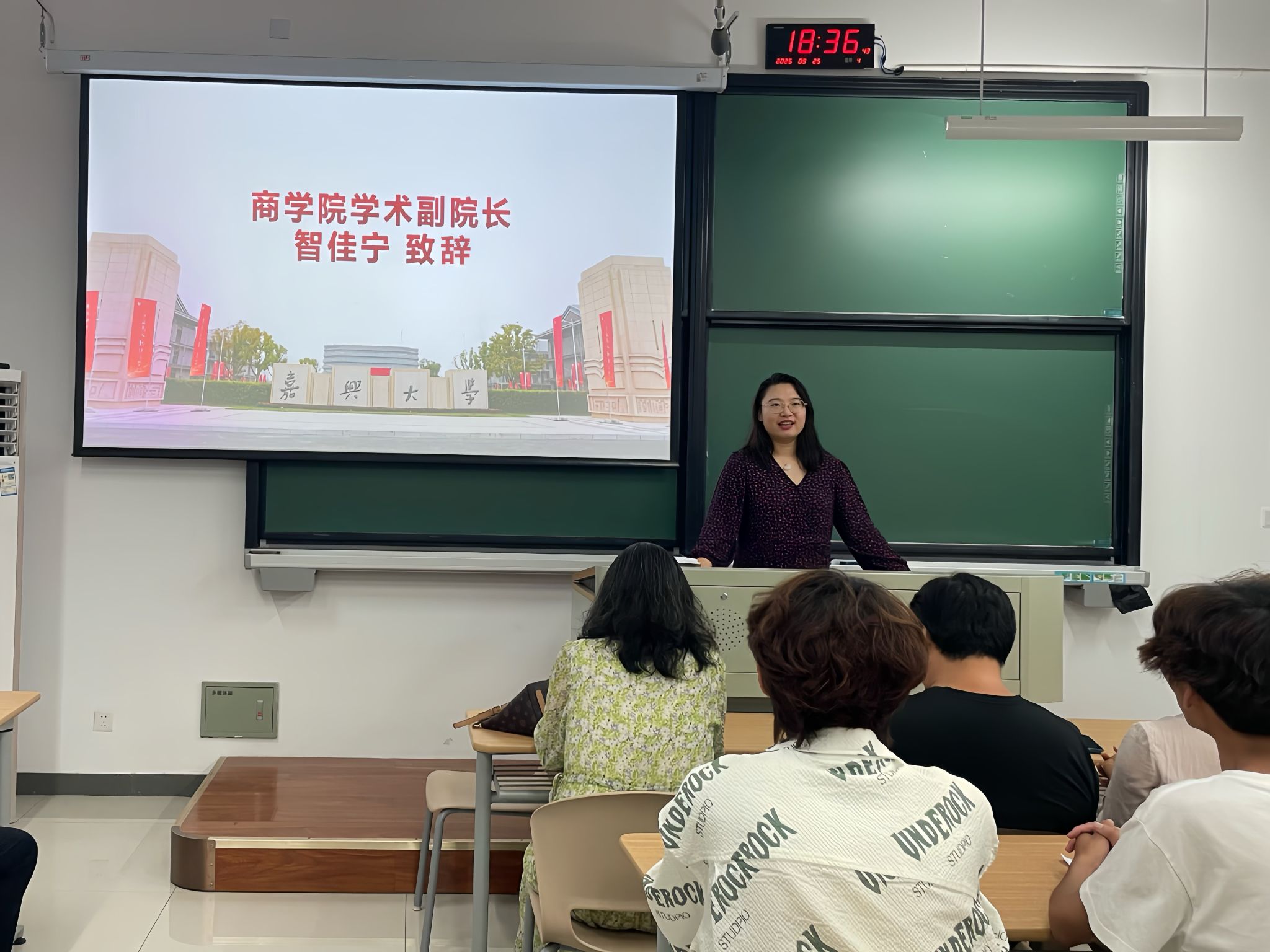 “会议致辞”环节,智佳宁副院长向全体新生表示诚挚欢迎和热烈祝贺,并就未来大学生活提出了三点期望:一是鼓励同学们积极参与创新创业竞赛,以赛促学、提升综合能力;二是夯实专业基础,注重理论与实践相结合;三是树立远大目标,赓续百年商科学脉,合理规划四年学业,为个人成长筑牢根基。