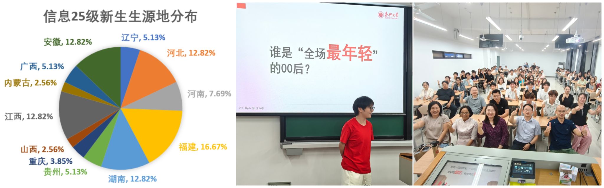 “互动交流”环节,主持人首先对2025级信息管理与信息系统同学生源地、性别等各种数据进行了分析,并抛出家校最远距离、专业年龄最小、专业最美同学、家乡美食等10余个互动话题,让互动气氛推向高潮,也让全体教师、新生彼此熟悉及了解。