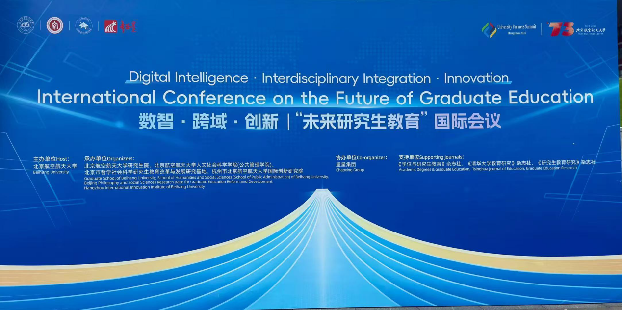 1022—23日,由北京航空航天大学主办的“数智˙跨域˙创新 | 未来研究生教育”国际会议在杭州举行。本次会议属于北航UPS峰会专题学术会议,汇聚来自北京航空航天大学、香港中文大学、复旦大学、北京师范大学、密歇根大学、英属哥伦比亚大学、中国学位与研究生教育学会、中国高等教育学会、法国欧洲教育与社会政策研究所等全球学界、政策界、产业界代表,旨在探讨数智时代研究生教育的未来及其可能发展路径,着力造就拔尖创新人才,全面提高人才自主培养质量,促进研究生教育创新与可持续发展。
