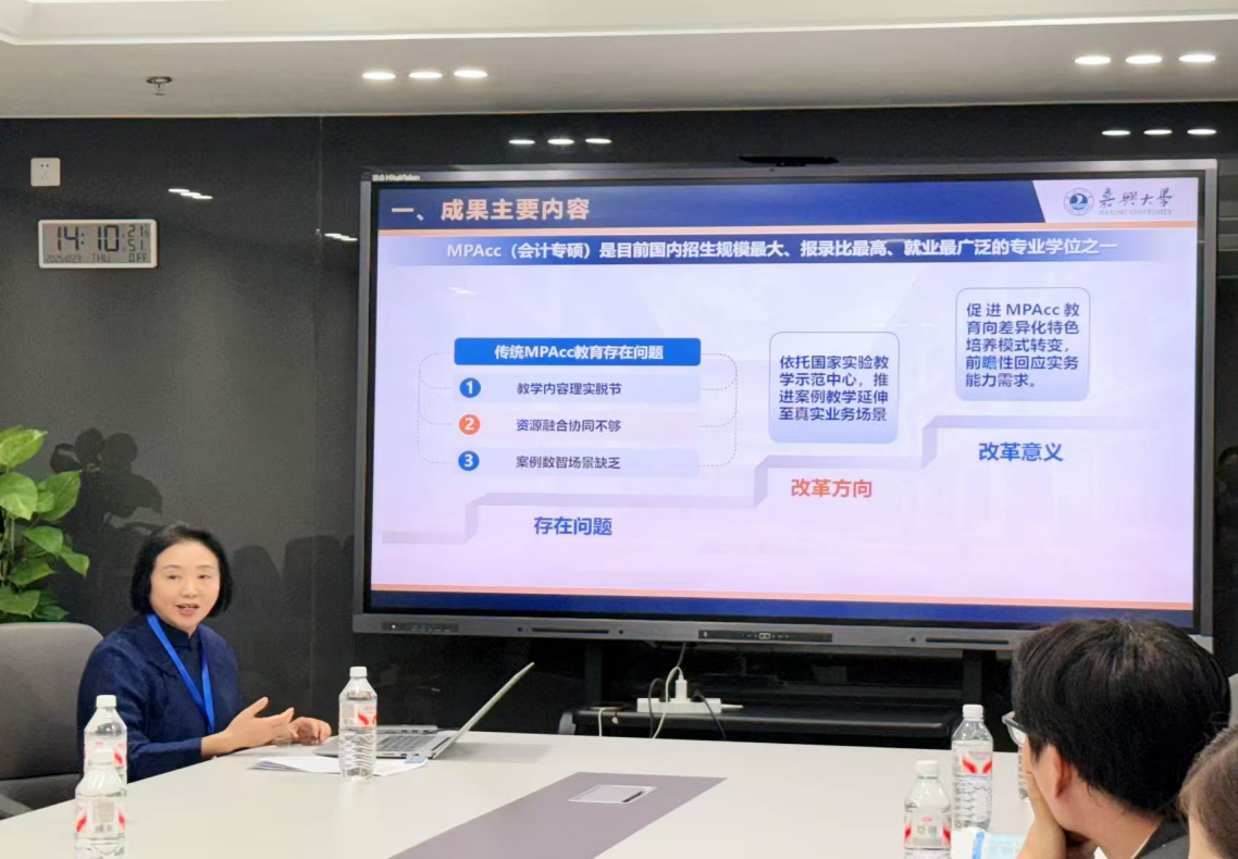 潘煜双教授在“人工智能框架构建及其对研究生教育的深层影响”平行论坛作专题报告《集成·融合·迭代:数智化场景下MPAcc案例教学三联驱动机制的创新与实践》,围绕91视频 MPAcc的案例教学实践进行了经验分享。潘煜双教授认为,案例教学作为衔接教育场域与职业实践的中介,也是实现学科交叉融合重要路径,越来越成为专硕教育的重要手段。91视频 的MPAcc教育针对“数智场景案例集成与编写驱动机制不健全、案例教学实施与相关教学资源协同性不够、评价激励标准与案例教学目标契合度不高”的三大问题,构建了系统化的MPAcc案例教学三联驱动机制:实务导向案例集成编写机制、教研赛训一体的融合驱动机制和目标达成案例教学评价迭代机制。经过6年的探索与实践,案例教学取得了良好的培养效果与社会影响,为其他相关专业学位研究生教育提供借鉴。