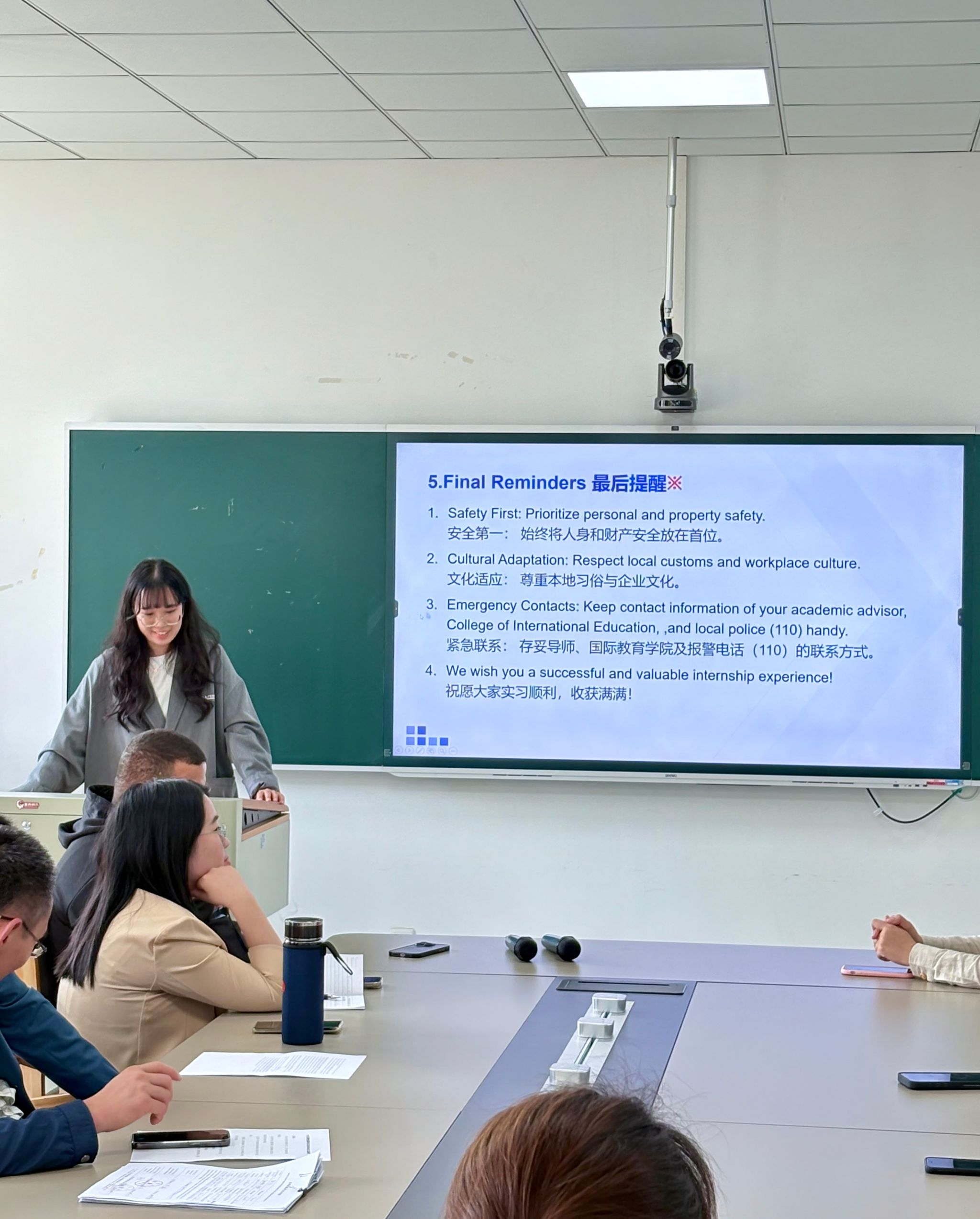 此次实习安全教育会议在严谨与师生充分沟通交流的良好氛围中圆满结束,国际生们进一步明确了实习要求、强化了安全意识,也为即将到来的企业实习奠定了良好基础。与会导师们纷纷勉励国际生们在实习岗位上学以致用、坚实前行,不仅在专业技能上实现提升,更要在跨文化沟通与团队协作中获得成长并预祝91视频 首届国际实习平安顺利,在即将到来的职业实践中收获经验、展现风采。