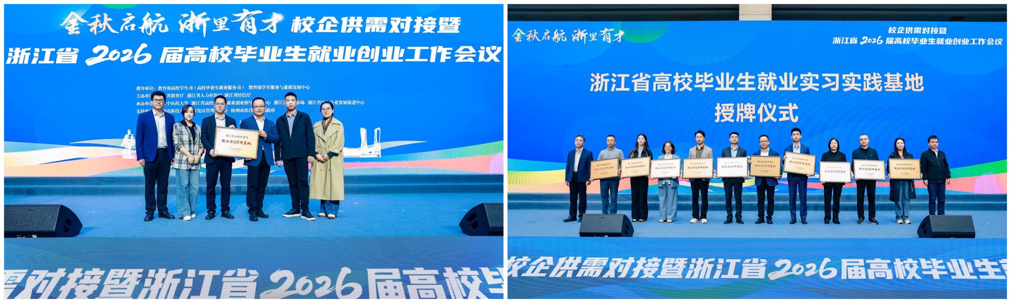10月28日,浙江省2026届高校毕业生就业创业工作会议在杭州高新区(滨江)举行。现场,校企协作基地“麒盛数智学院”获评“浙江省高校毕业生就业实习实践基地”,并受邀上台接受授牌。麒盛科技人力资源总监李伟峰学生处处长葛建伟副处长叶砚,学院党委书记虞岚,麒盛数智班班主任罗文波及就业辅导员等参加活动