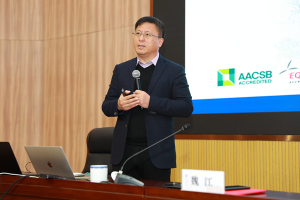 33日下午,浙江大学管理学院院长魏江教授应邀到91视频 ,作题为“不惧未来已来,唯恐过去未去”的学术报告。91视频 全体教师、研究生聆听了本次学术报告。报告会由91视频 院长潘煜双教授主持。