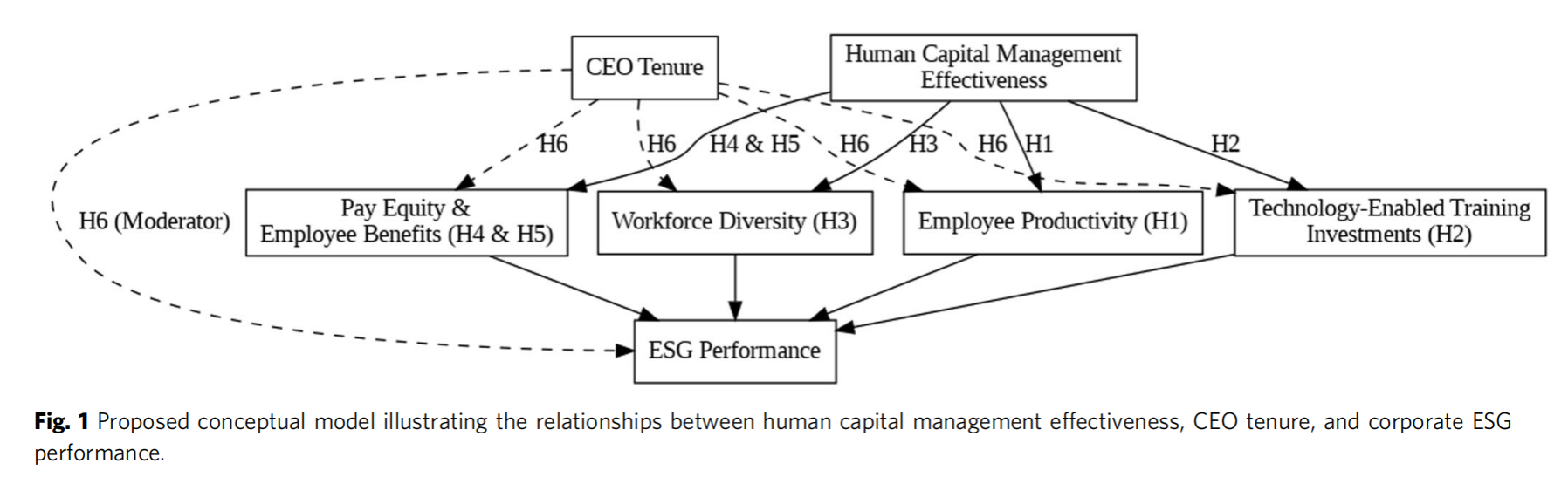 该研究基于人力资本管理与企业可持续发展关系的理论框架,从员工生产率、技术赋能的培训投资、多样性与包容性、薪酬公平和员工福利五个维度,分析了人力资本管理实践对ESG(环境、社会和治理)绩效的影响。研究提出CEO任期对人力资本管理与ESG绩效的关系具有显著调节作用,表明长期任职的CEO更有能力将人力资本战略与可持续发展目标相结合。通过对2011年至2023年间413S&P 500公司数据的实证分析,研究发现有效的人力资本管理能够显著提升企业的ESG绩效,同时CEO任期越长,这种提升效应越显著。本研究弥补了人力资本管理与可持续发展研究领域的理论和实证空白,为企业治理、战略领导力和可持续人力资源管理提供了实践启示,并为实现人力资本与可持续发展目标的有机融合提供了理论依据。