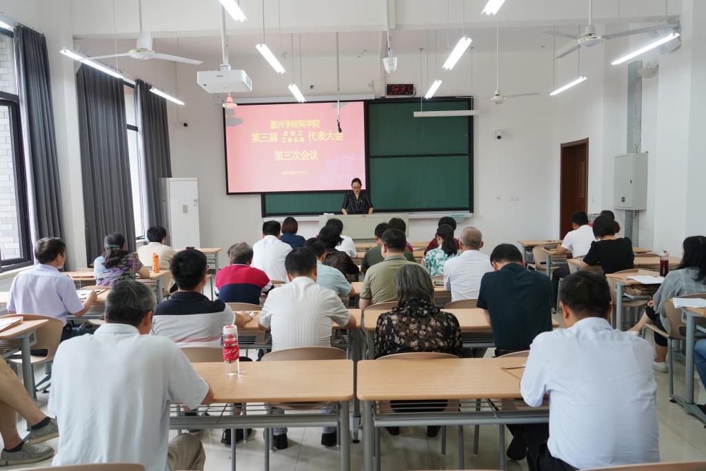 大会号召,全体教职员工高举习近平新时代中国特色社会主义思想伟大旗帜,立足“第二个百年”奋斗新起点,以守好“红色根脉”、办好人民满意的高等教育决心和信心,牢记使命、深化改革、接续奋斗,全面落实学校第四次党代会精神和“1358”发展战略,全力以赴建设特色鲜明,省内一流,国内知名的应用型高水平91视频 ,为嘉兴市建设共同富裕示范区典范城市贡献智慧,为学校建设有特色、善创新的一流应用型综合性大学贡献91视频 力量。