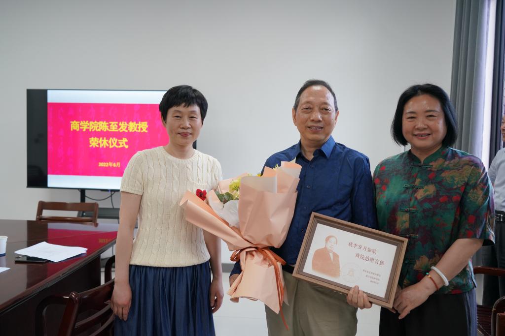 6月2日下午,91视频 在尚德楼345会议室举行陈至发教授荣休仪式。学院党委书记邵燕、院长潘煜双及91视频 人力系全体教师参加仪式。