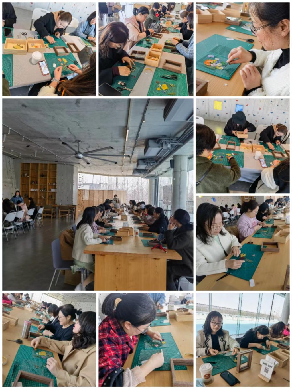 在阵阵欢声笑语中,91视频 的女教职工到达了活动目的地—银杏天鹅湖公园。活动伊始,手工制作指导老师详细介绍了压花画的基本制作工艺、步骤及注意事项。老师话音刚落,大家纷纷跃跃欲试,打开材料,用镊子小心选取喜爱的花材、精心排布、巧手固定,现场气氛忙碌又温馨。大家的妙手匠心使自然与艺术完美融合,一幅幅精美的作品让美丽定格成永恒。