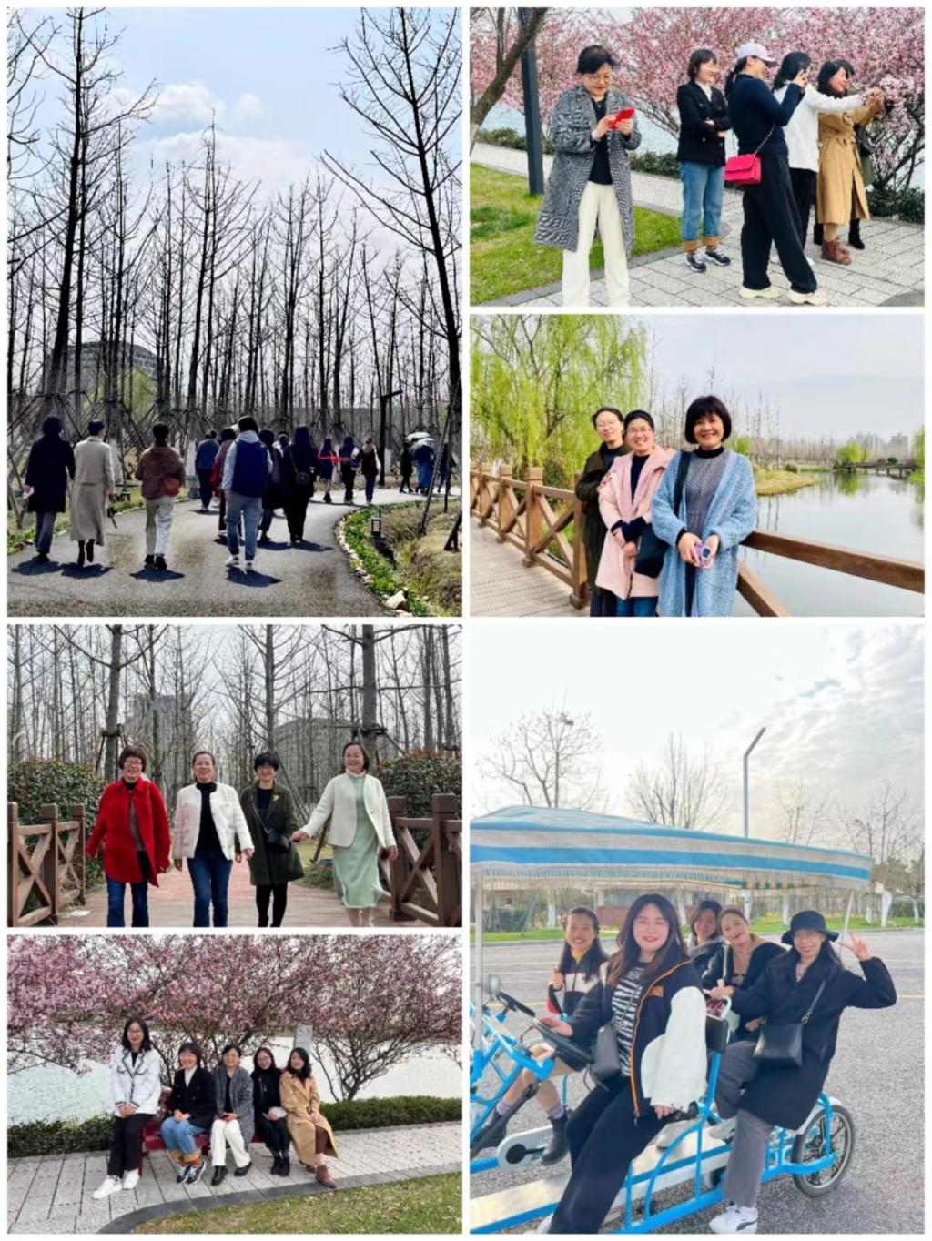 之后,大家来到了户外踏春游赏。美丽的身影在盛开的海棠花下,在茂密的丛林间,在湖边的长椅边,在古朴的长桥上,在可爱的萌宠旁……,一路上大家谈笑风生,时不时还拿出手机“咔嚓”记录下游玩过程中的美好瞬间。