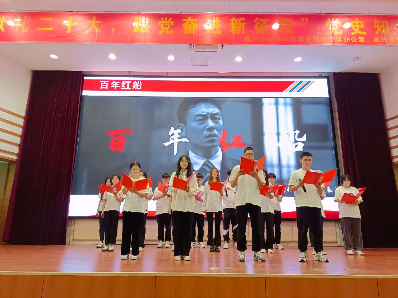 8组学员通过声光影音,以访谈的形式展现出嘉院党员们面对疫情时用实际行动践行“一名党员就是一面旗帜、一个支部就是一座堡垒 ”;第3组学员以情景剧的形式再现了安吉黄杜村一叶白茶富四方的故事,学员们生动演绎了黄杜村党员积极践行“绿水青山就是金山银山”为理念,绿富兼得,走出一条绿色经济发展之路;第1组学员以红船的劈波斩浪为脉络,将党用铁锤砸烂旧世界,用镰刀收获新的光明未来的光辉历程娓娓道来,同学们坚信“肯取势者可为人先,能谋势者必有所成”。