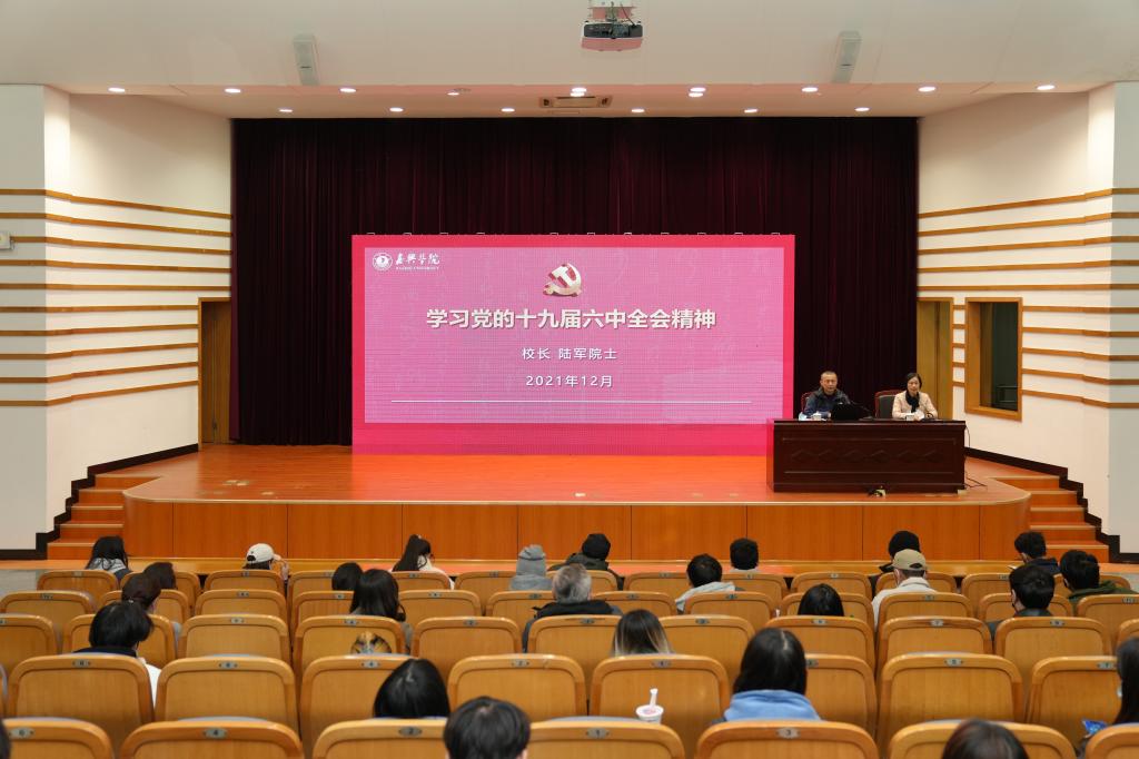 陆军从深入领会党的十九届六中全会精神重大意义、深刻认识党的十九届六中全会精神丰富内涵、从党的十九届六中全会精神中充分汲取智慧和力量三个方面进行了全面系统的宣讲和解读。陆军希望,全体教职工通过学习六中全会精神,将党史学习教育、“四史”宣传教育结合进来,围绕学校“1358”的发展战略,聚焦聚力高质量发展,进一步营造“干在实处、走在前列、勇立潮头”的浓厚氛围;希望青年学生从党的百年奋斗中汲取信仰的养分,坚定理想大志,自觉做中国特色社会主义共同理想和中华民族伟大复兴中国梦的忠实践行者。整场宣讲观点鲜明、精准透彻,既有政治高度、也不乏理论深度,有助于大家进一步加深对党的十九届六中全会精神的理解把握,进一步提升思想认识和创新实践。