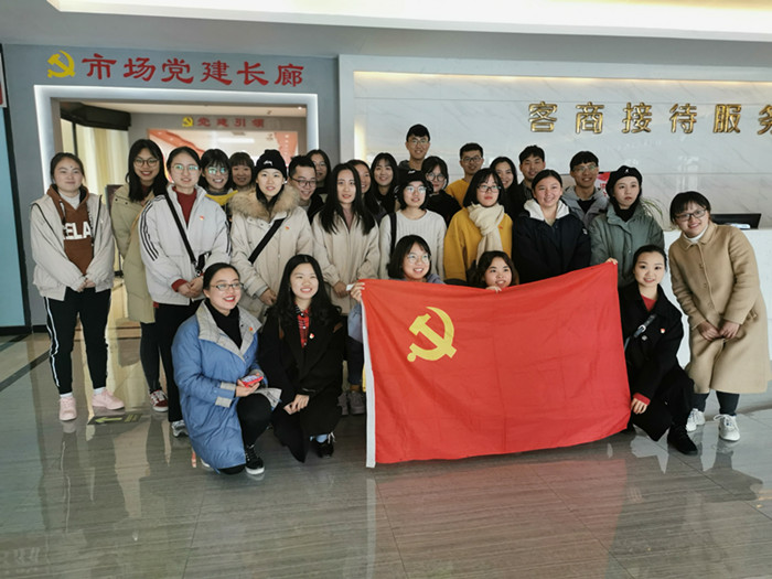 师生此行先前往洪合镇毛衫市场党支部进行学习交流。由该党支部同志带领我校师生参观了毛衫文化博物馆、市场党建长廊和网红直播中心,通过专人讲解、历史资料阅览、宣传片观看等多种方式介绍了洪合毛衫市场历史蜕变之路和当前运营情况,也学习到了他们经营与党建相结合的优秀理念。随后师生来到洪合镇文化公园,参观了纪念碑、洪合城市客厅和青年学习社,了解和学习以王洪合为代表的一大批先进党员通过“坚守初心,以血肉担当使命”的方式,打造新型特色党建工作的洪合品牌