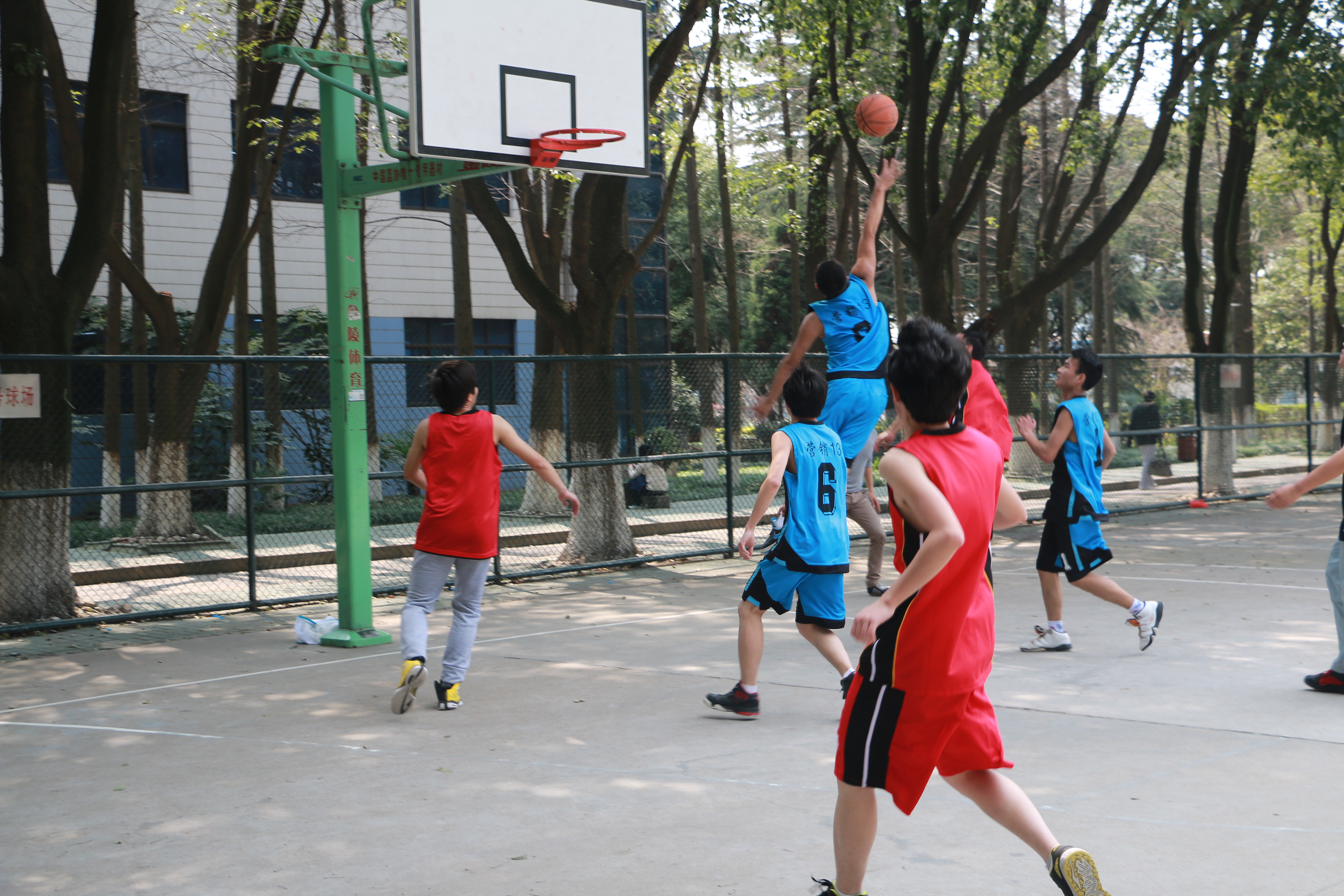 此次比赛共有23个参赛队,采取循环赛制,经过抽签进行小组赛争取出线名额。篮球场上,高高抛起的篮球点燃了本次篮球赛的热情。赛场上,队员全力以赴,精彩激烈。赛场下,同学文明观赛,喝彩声不断。