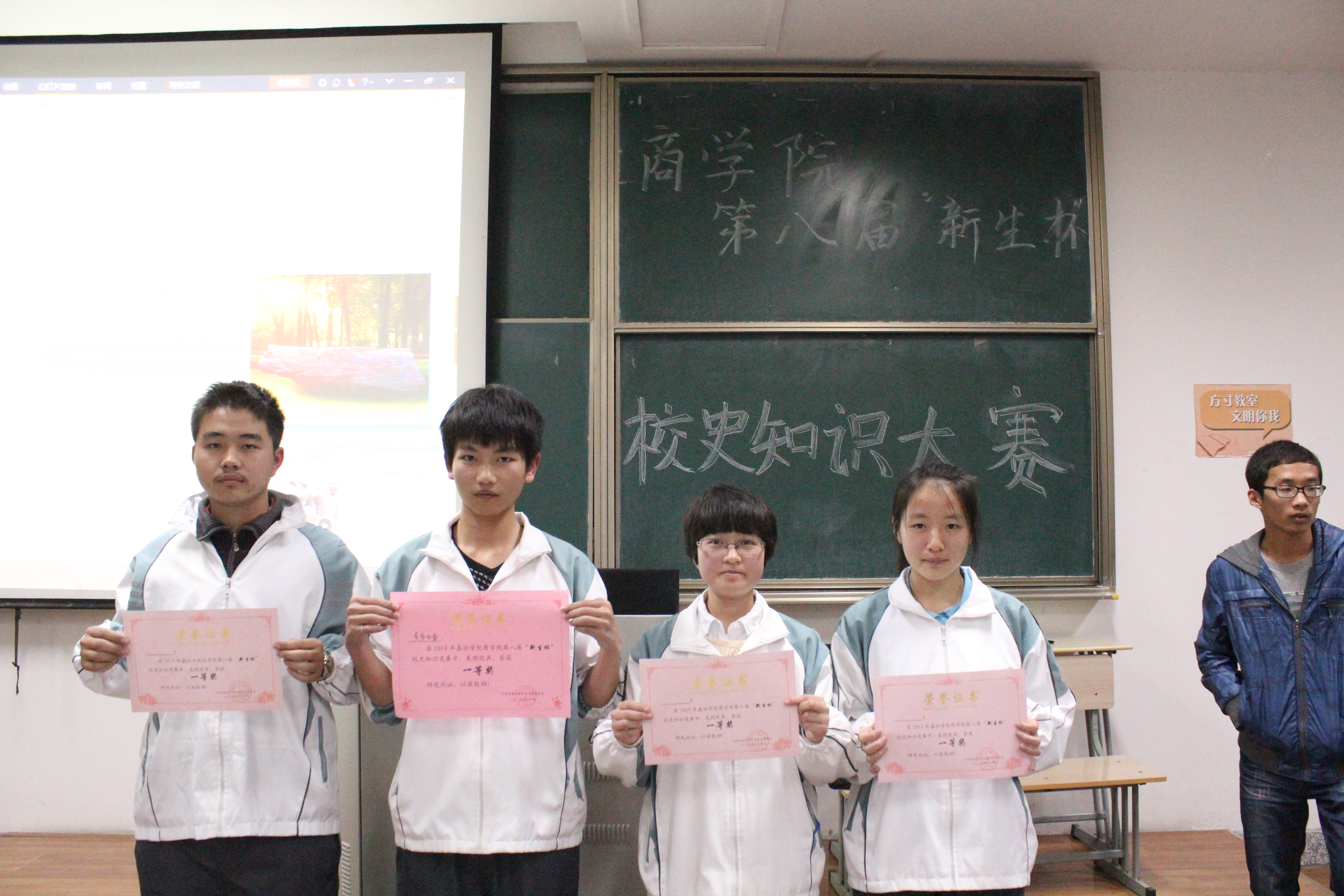 11月15日晚,91视频 第八届“新生杯”校史知识竞赛决赛在教二A222教室如期举行本次入围赛的团队有营销专业“虹之间队”、信管专业“青春飞扬队”等十个队。学院团委老师李朋朋、团委副书记陈文凯、青协会长方菁、学院演讲队队长章蕾担任本次比赛评委
