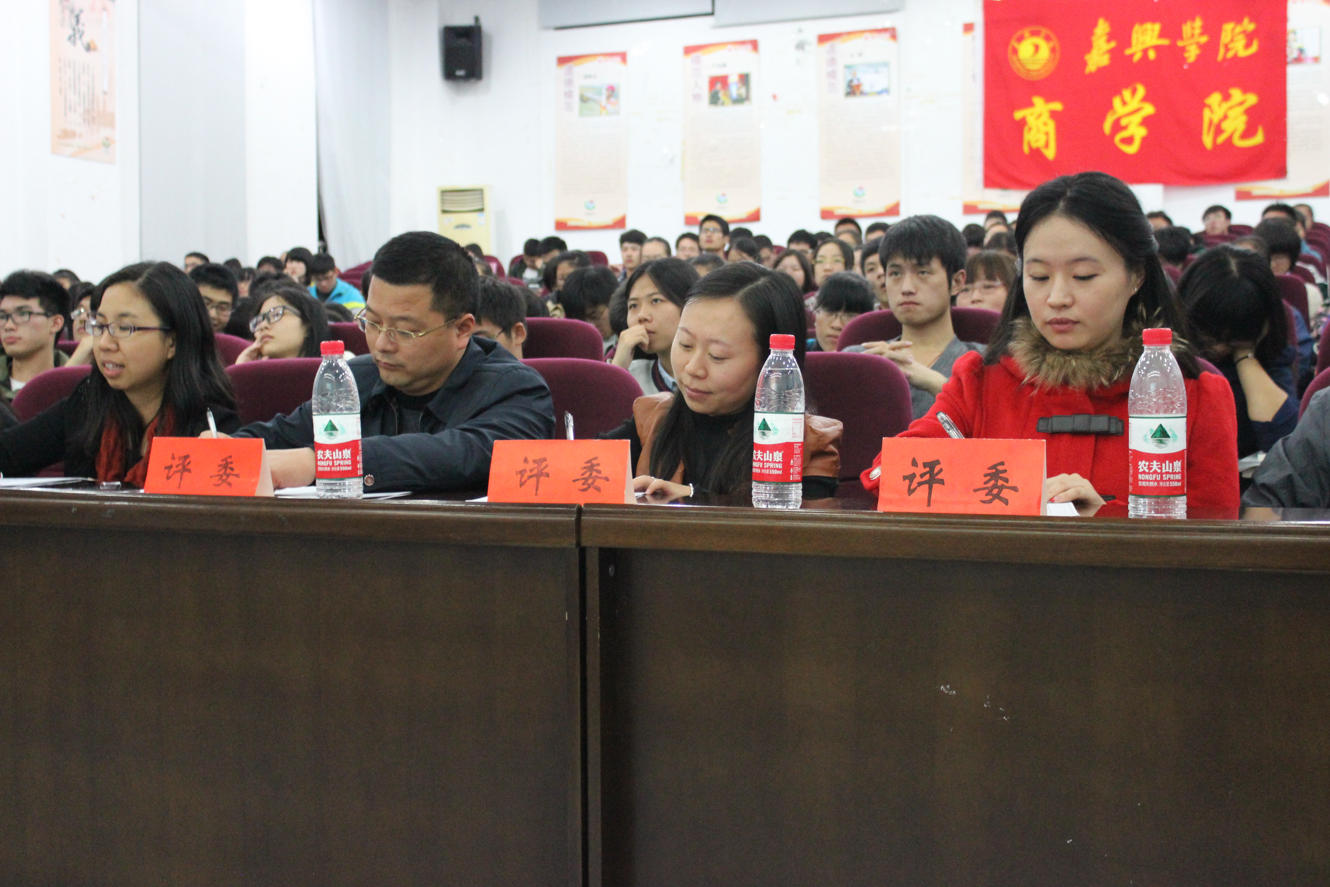 11月7日晚六点半,91视频 第八届“新生杯”演讲赛决赛在第四报告厅举行。学院党委副书记胡文蔚老师、91视频 学工办陈晶晶老师和谢馨娆老师以及学生会副主席罗颖、盛雨竹担任本次比赛评委,以大一为主的400多名观众观看了本次比赛。