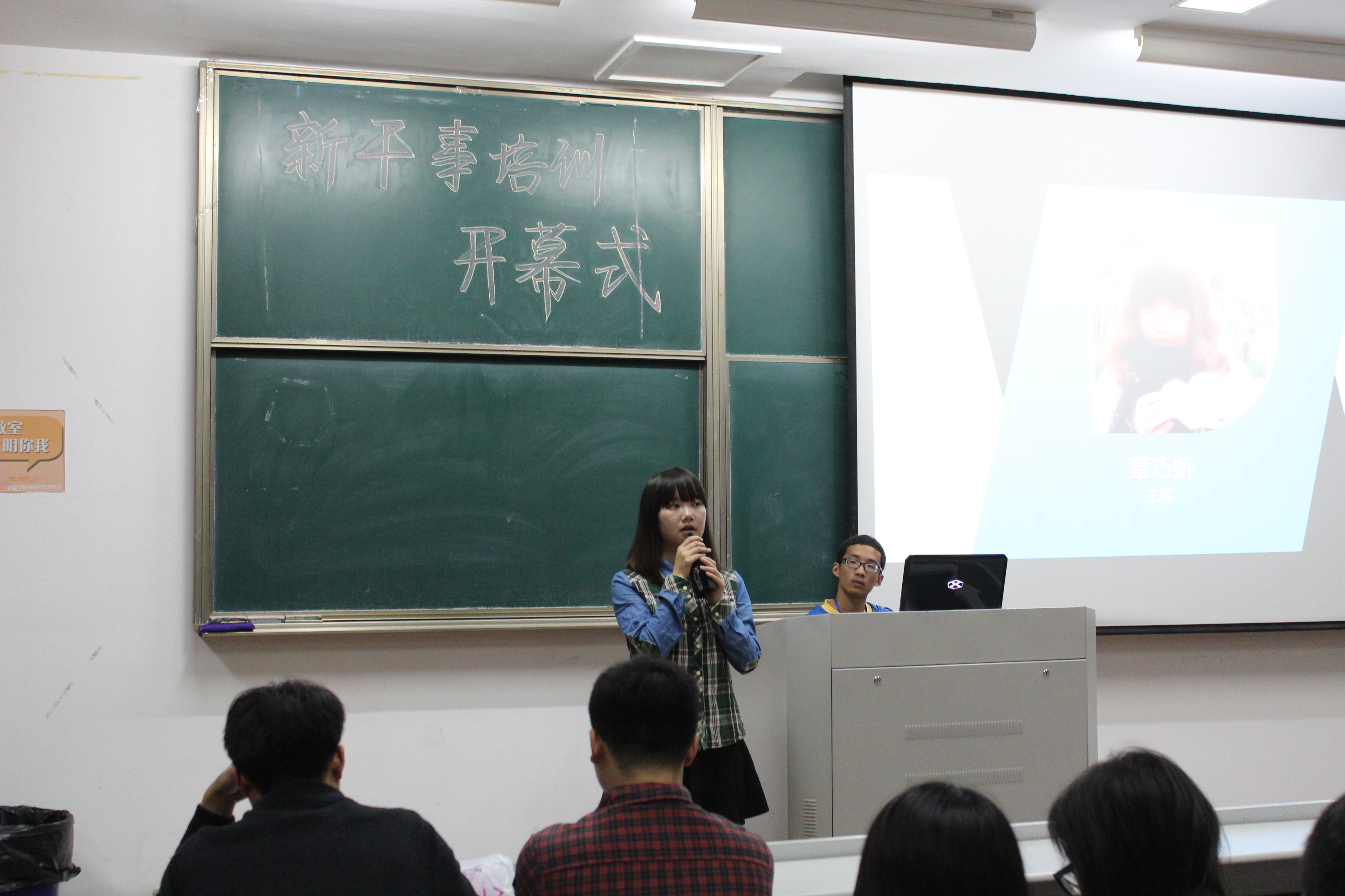 10月31日晚,91视频 2014学年新干事培训开幕式在教二A225举行学院团委李朋朋老师学工办贺书伟老师一百多位团学新老干事参加开幕式。