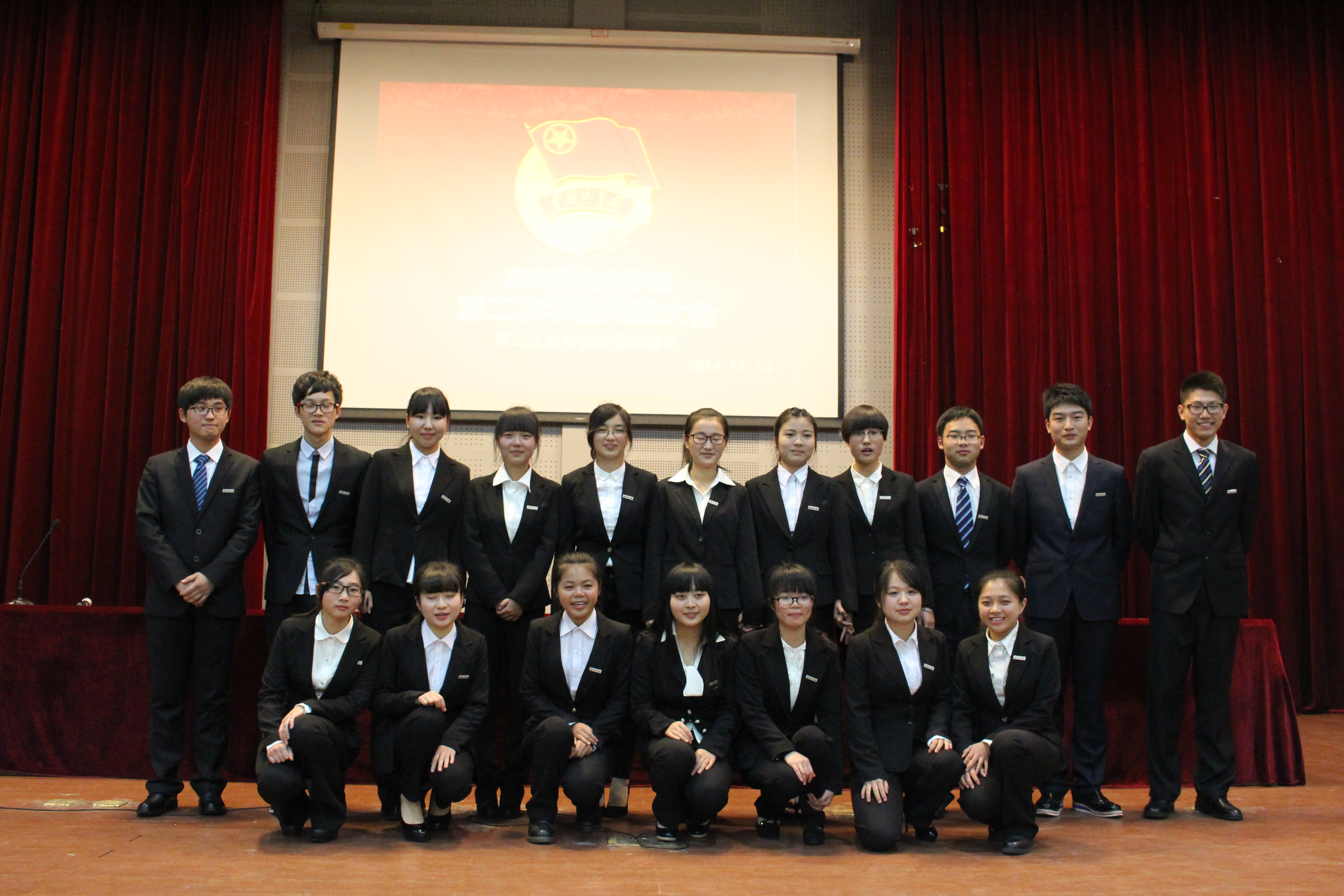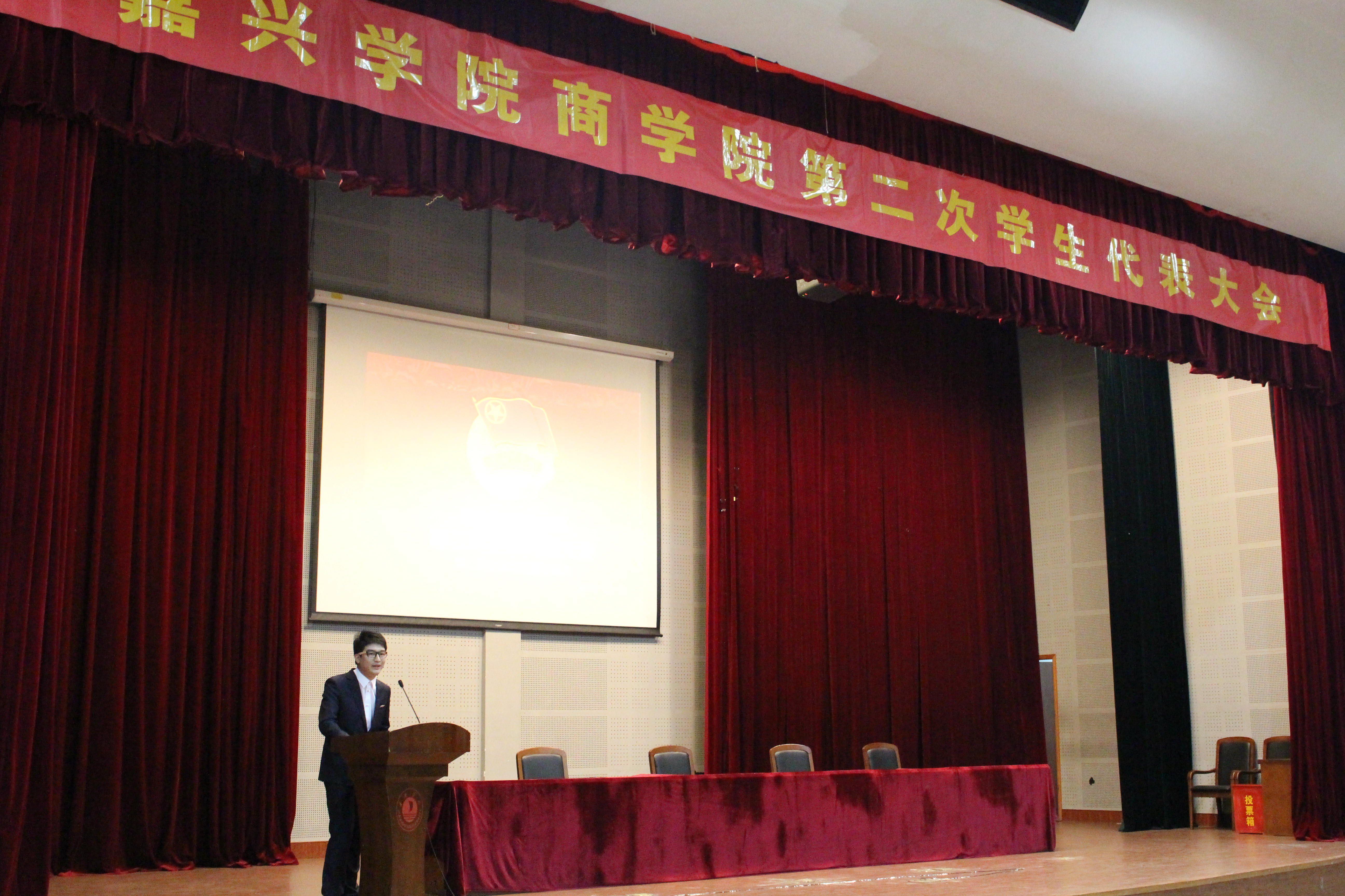 20141214日,嘉兴学院91视频 第二次学生代表大会在越秀校区第二报告厅正式召开,商学院团委书记潘欣老师、团委李朋朋老师、校学生会主席周琦同学91视频 团委副书记陈文凯同学,商学院学生会主席章巧娇同学、副主席徐瑶瑶同学盛雨竹同学罗颖同学,各分院学生会主席以及206位学生代表出席了会议
