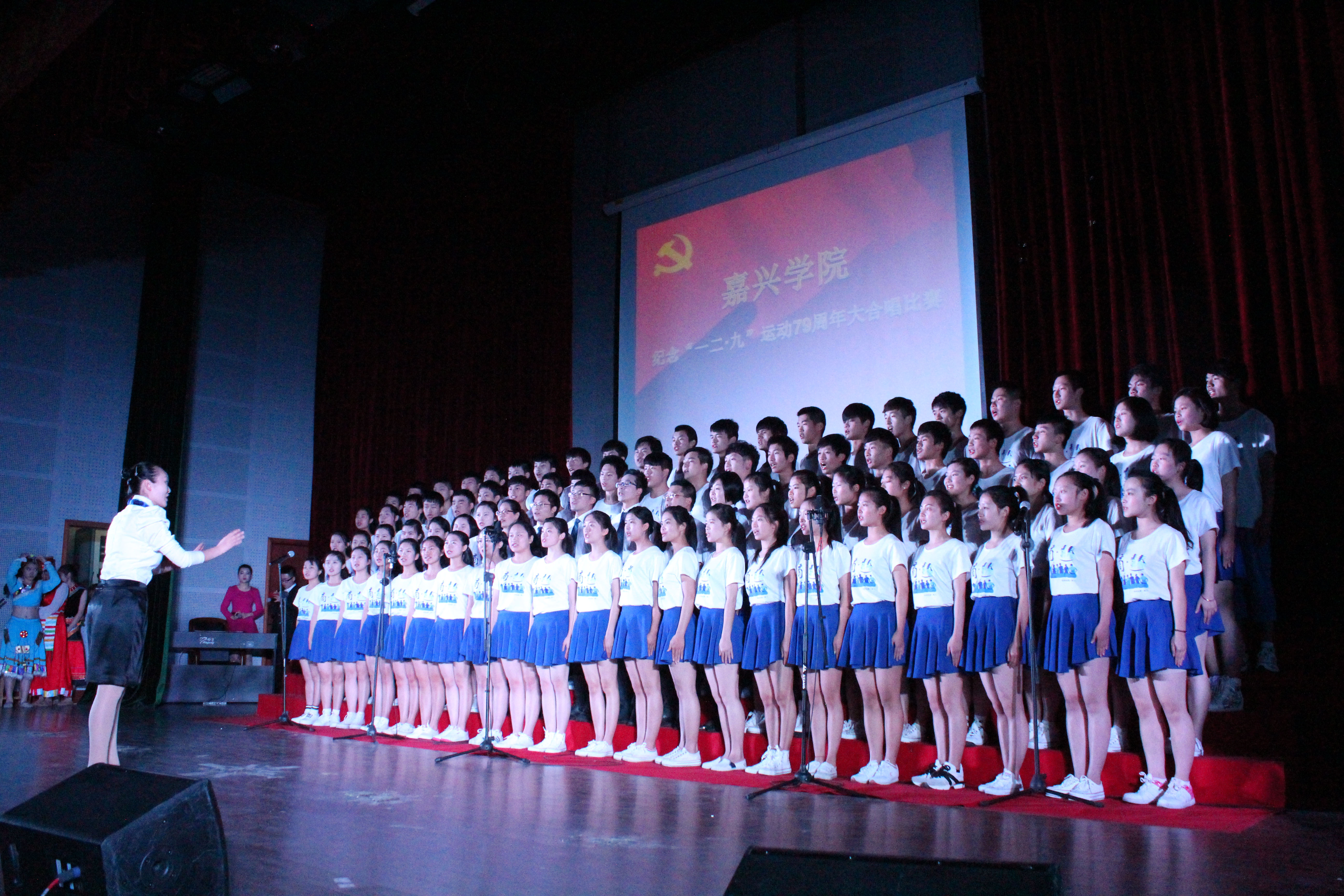 129日晚,2014年嘉兴学院“一二•九”大合唱在教二报告厅隆重举行。来自二级学院的十二支队伍参加了比赛,校党委书记黄文秀、党委副书记史永安、副校长费建文等人观看了比赛。