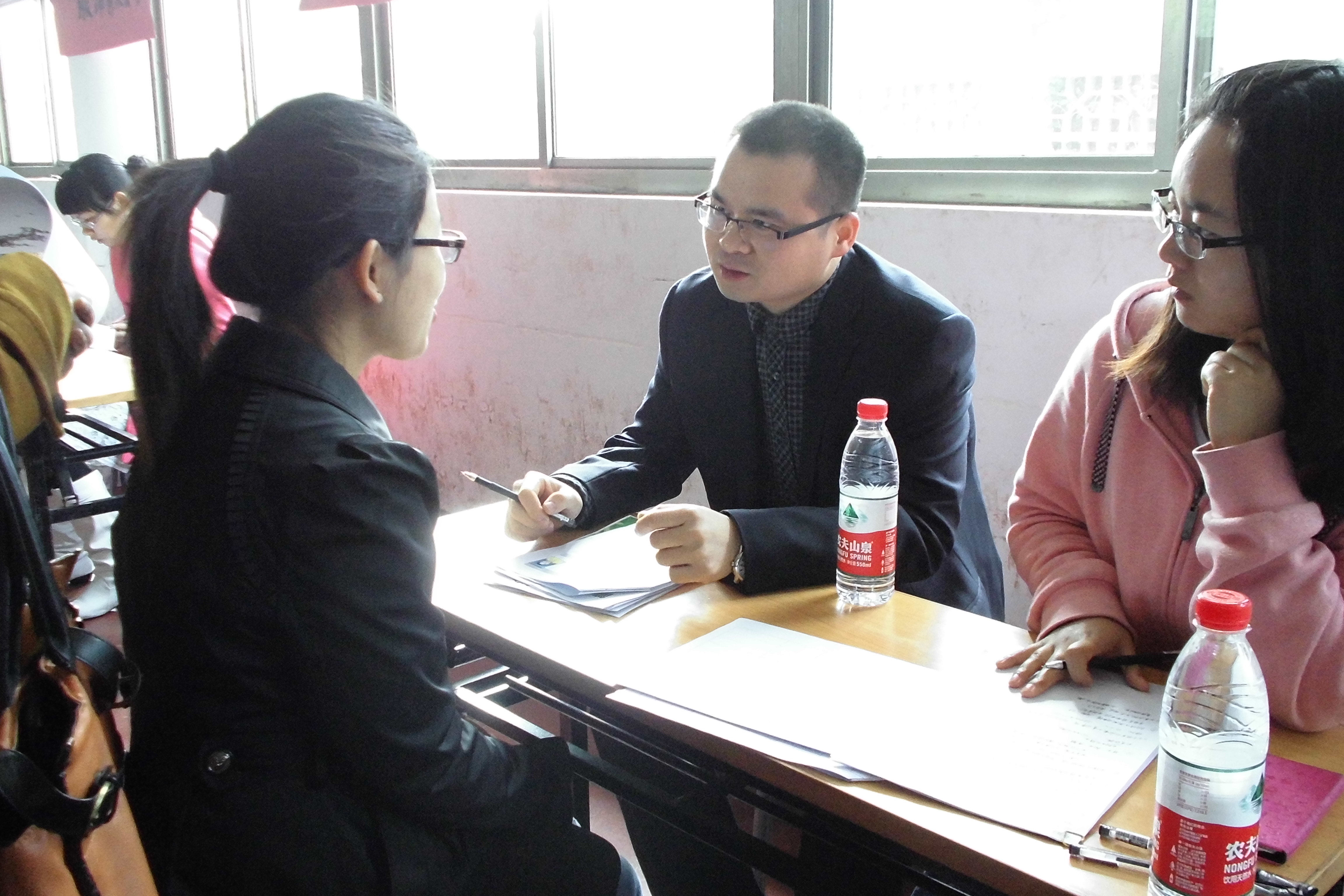 42191视频 在越秀校区体育馆举办2014届毕业生模拟面试。91视频 择优选聘的43名人力资源专业学生担任考官助理,配合校外邀请的考官,共同面试了前来应聘的2014届毕业生。