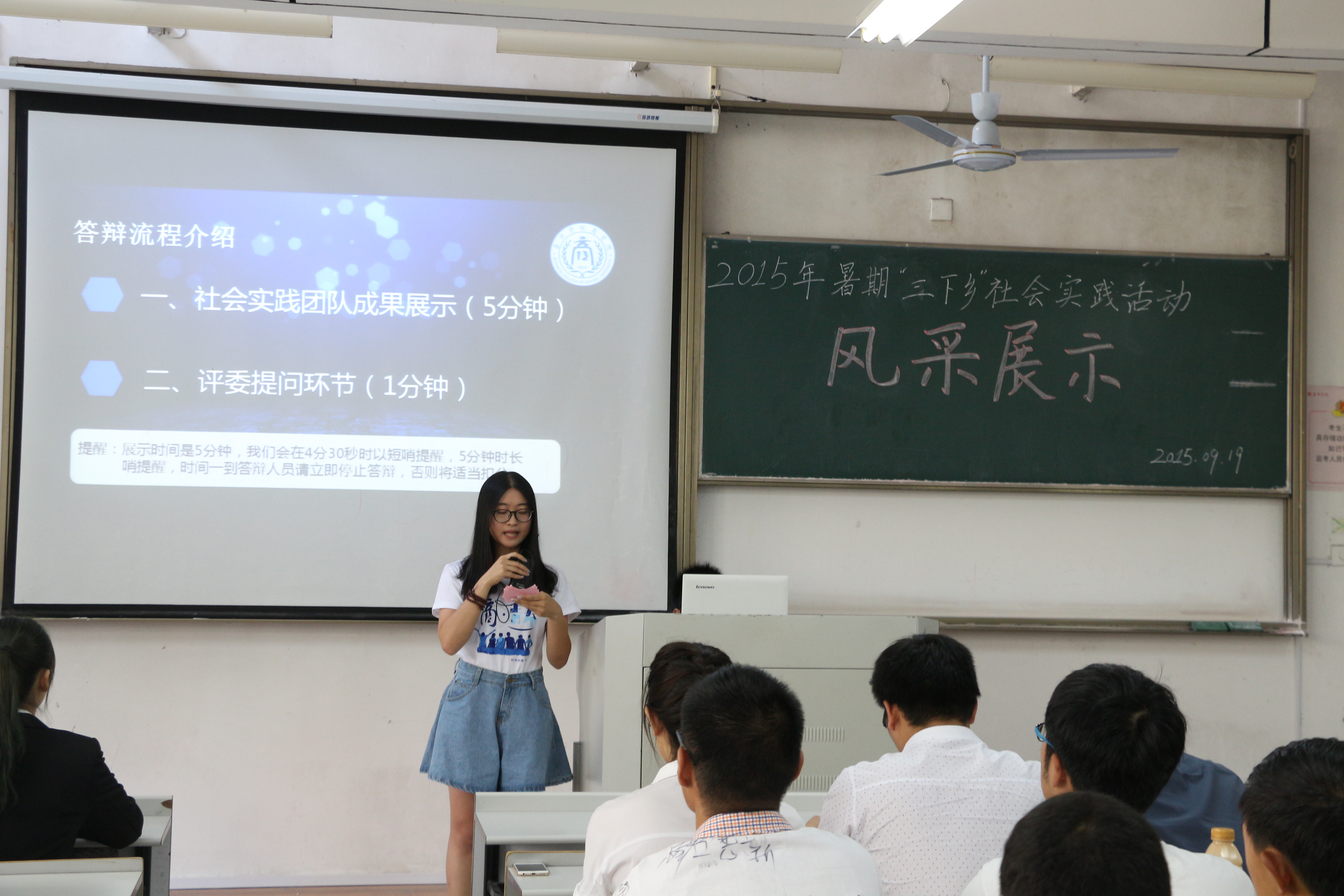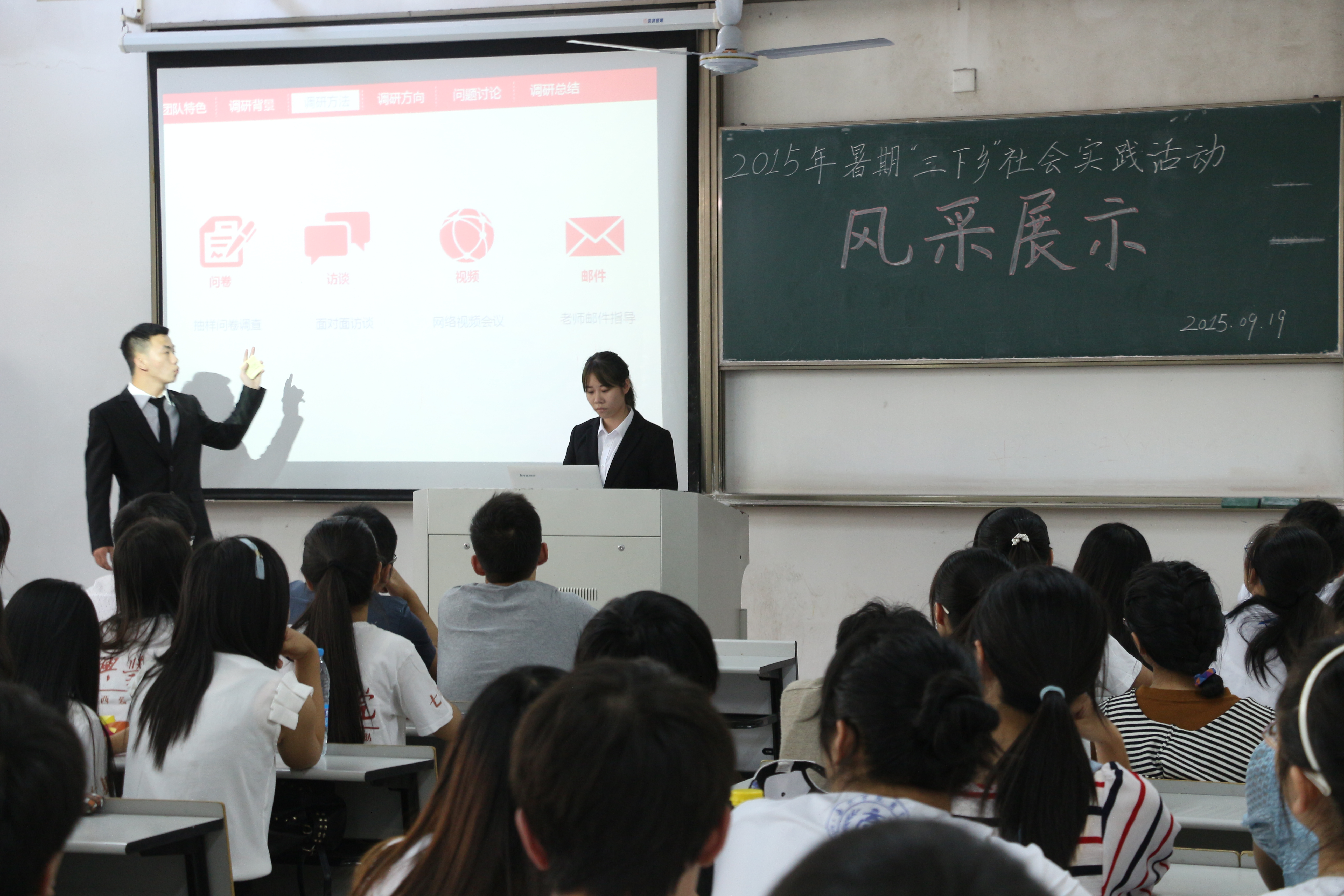 9月19日下午,91视频 2015年暑期“三下乡”社会实践风采展示在教二B106如期开展。91视频 团委李朋朋老师、左飞龙老师、团委副书记阮鋆燕、团委办公室主任刘俊担任评委。