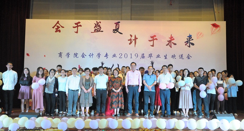 会计学专业于越秀校区第二报告厅举行“会于盛夏,计于未来”2019届毕业生欢送会。学院院长潘煜双、党委副书记陈云飞、会计学系主任崔晓钟以及会计专业师生共聚一堂,欢送2019届毕业生。